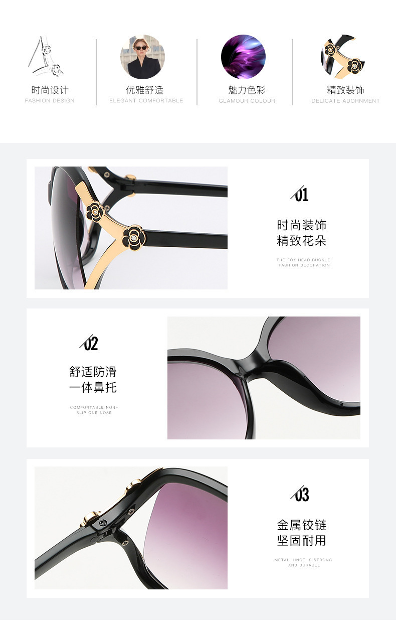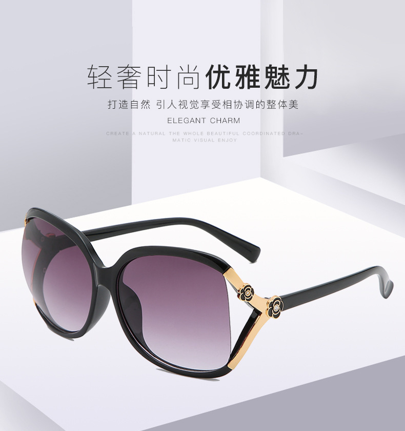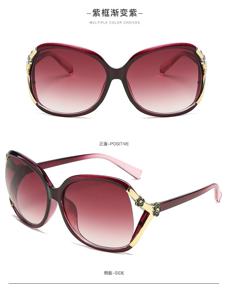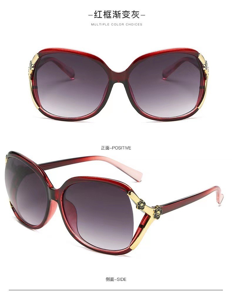 대형 프레임 동백 선글라스 로즈 유럽과 미국 패션 선글라스 복고풍 중년 여성 안경 자외선 차단 선글라스