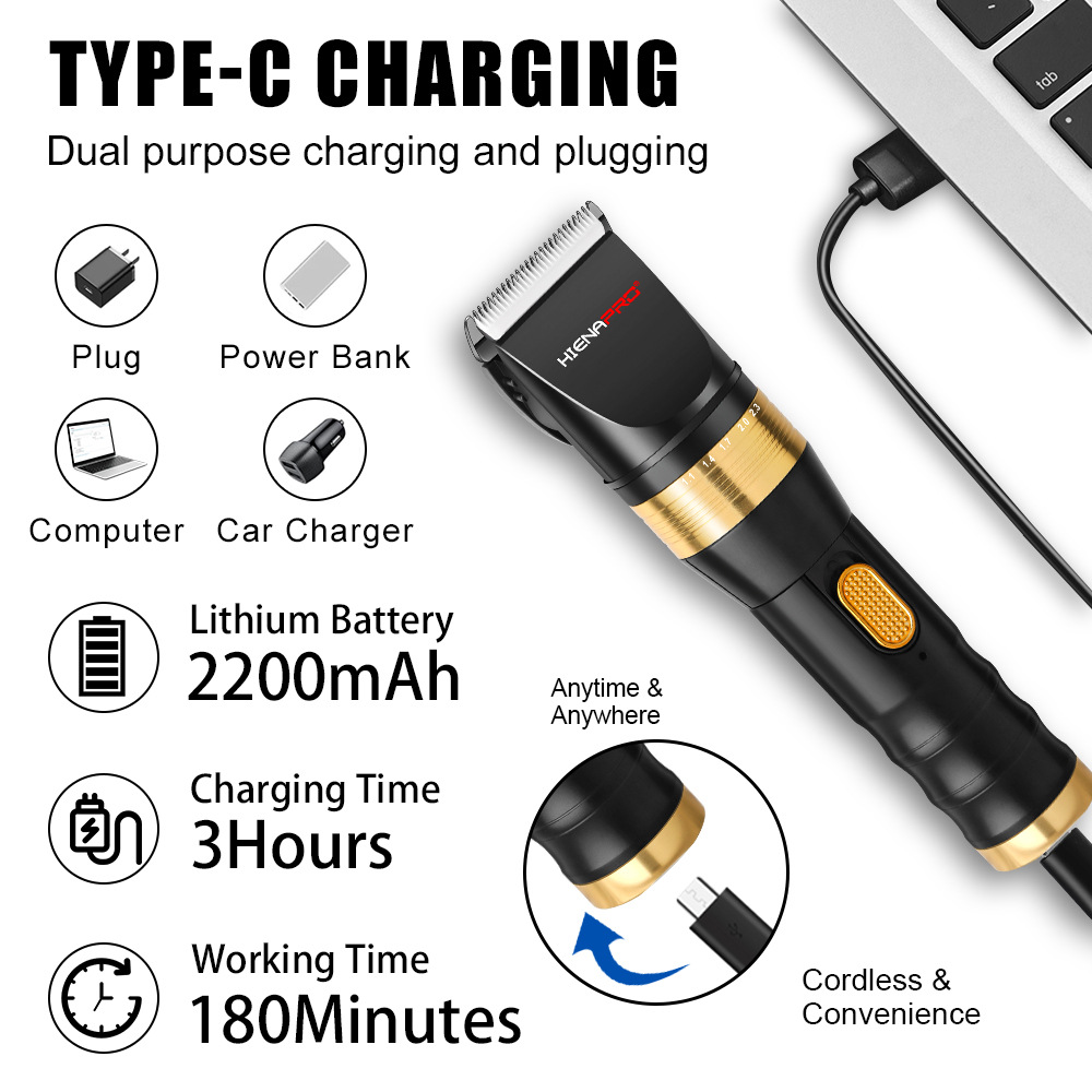 HIENA 전기 이발기, 미용실 및 이발소 전용 조각 이발기, 오일 헤드 전기 이발기, 충전식 면도기