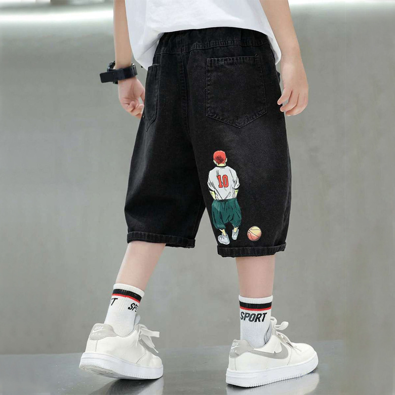 남학생 데님 바지 여름 반바지 더피 잘 생긴 큰 아이들 잘 생긴 스포츠 바지 아이들의 트렌디 한 바지스토어 가기