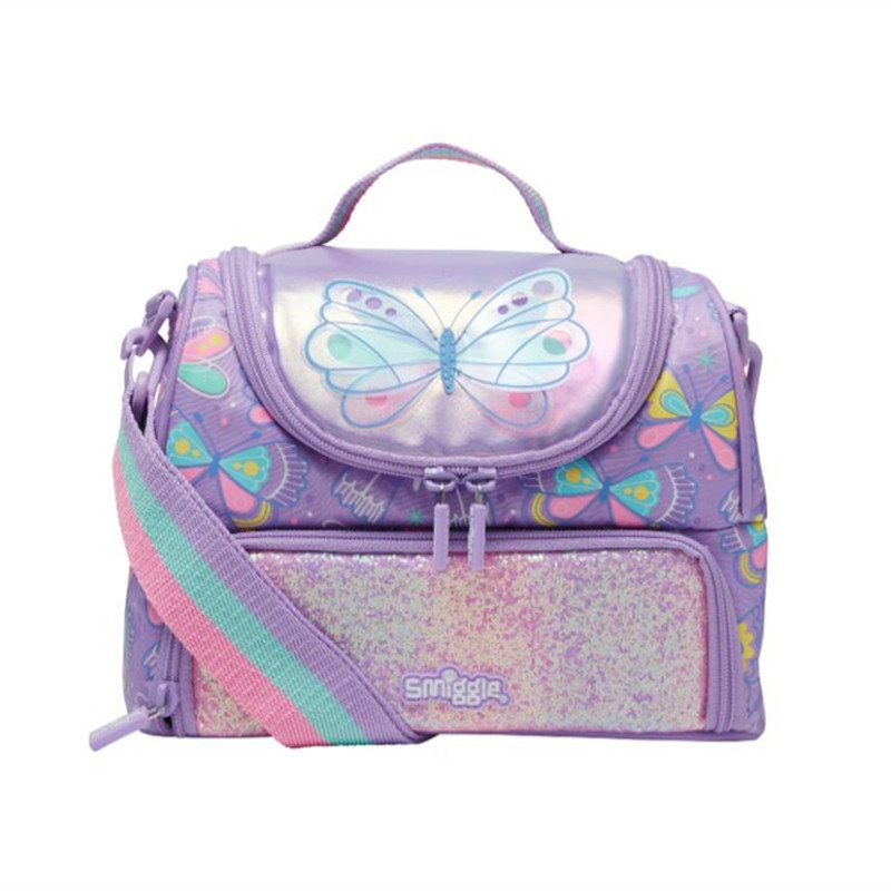 호주 Smiggle 더블 레이어 식사 가방 보라색 나비 어깨 점심 식사 가방 휴대용 아이스 백 보관