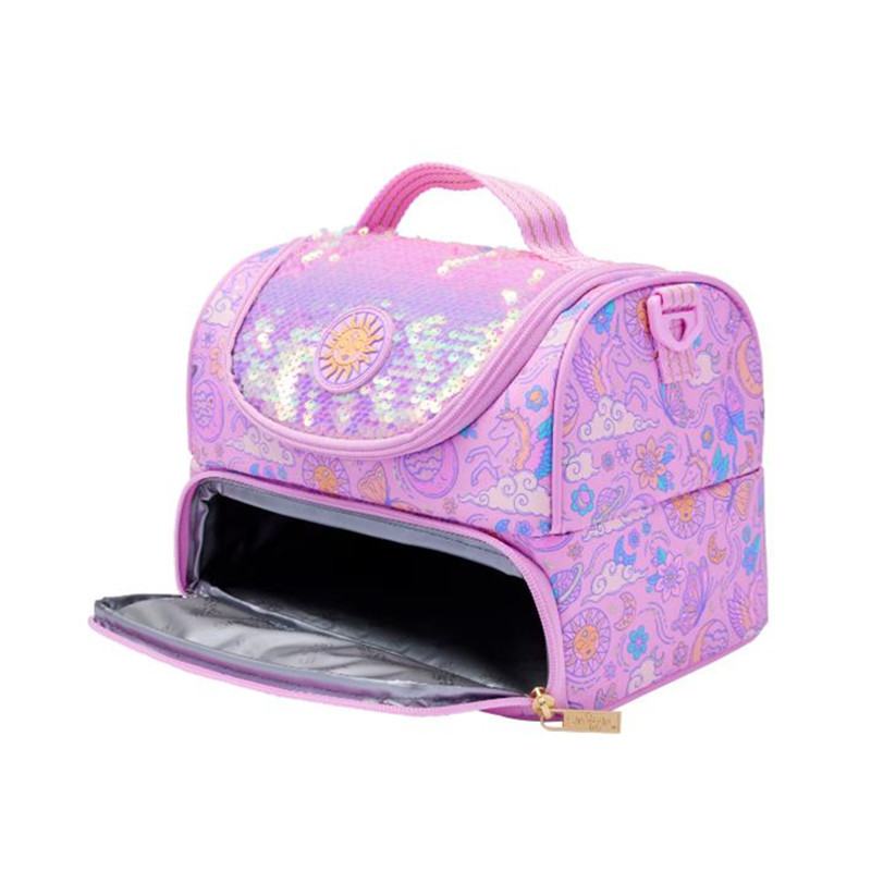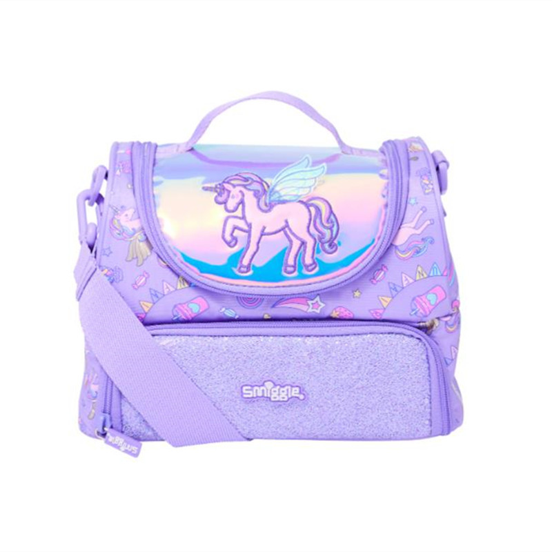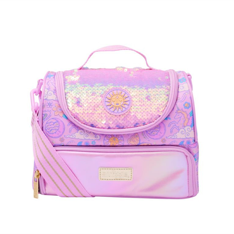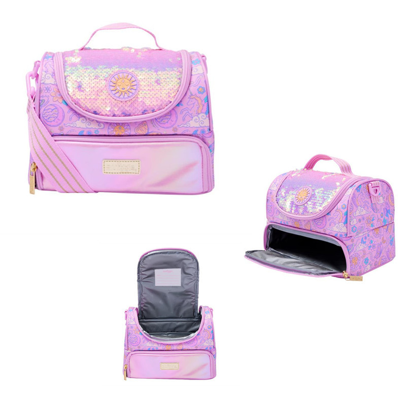 호주 Smiggle 더블 레이어 식사 가방 보라색 나비 어깨 점심 식사 가방 휴대용 아이스 백 보관스토어 가기