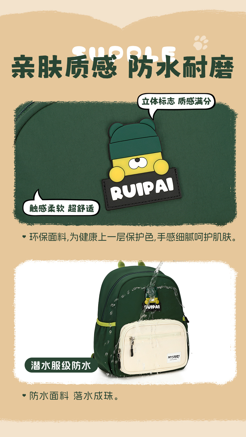 Ruipai 유치원 학교 가방 소년 소녀 어린이 아기 배낭 울트라 라이트 발수 2025 새로운 배낭