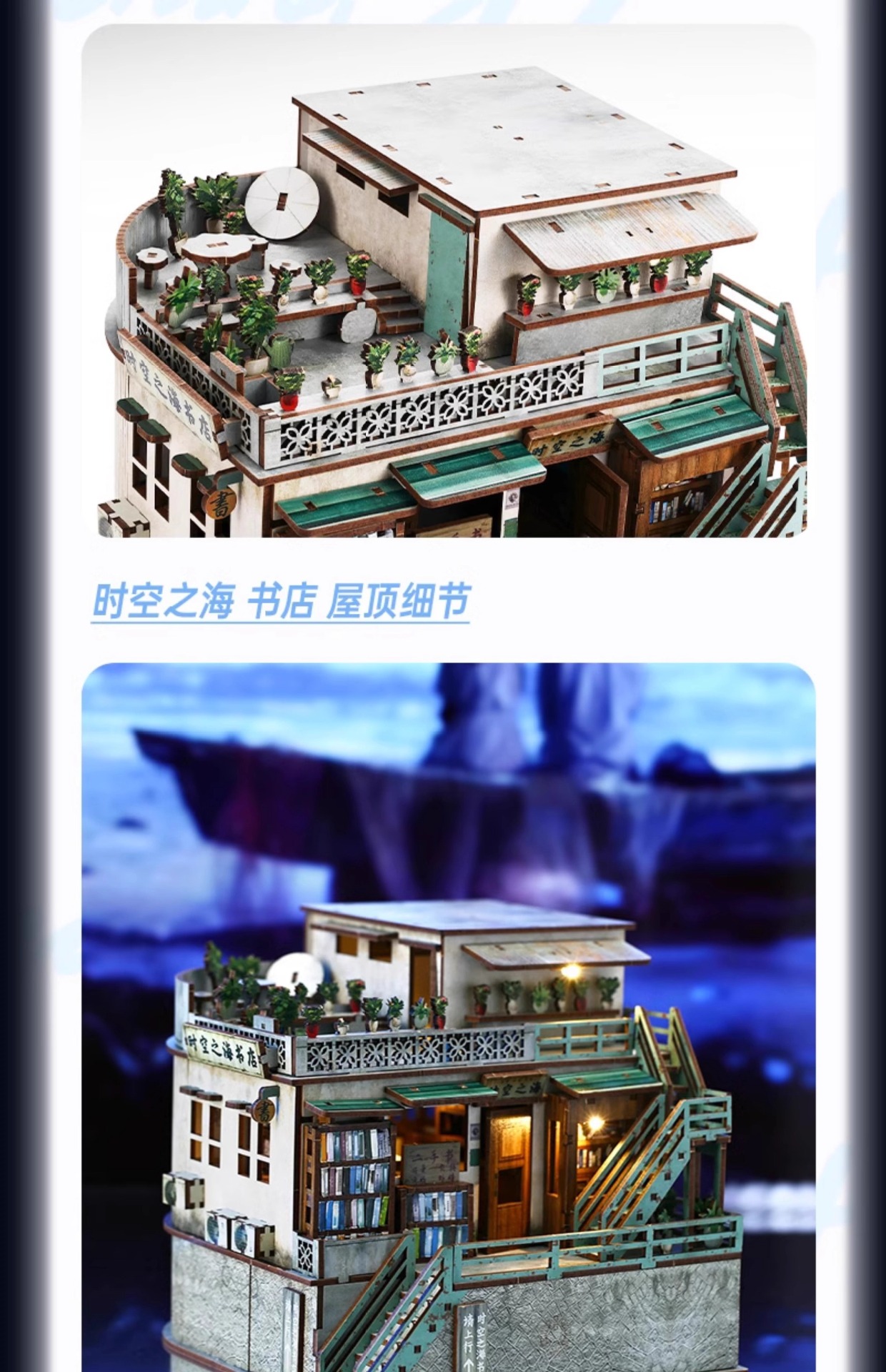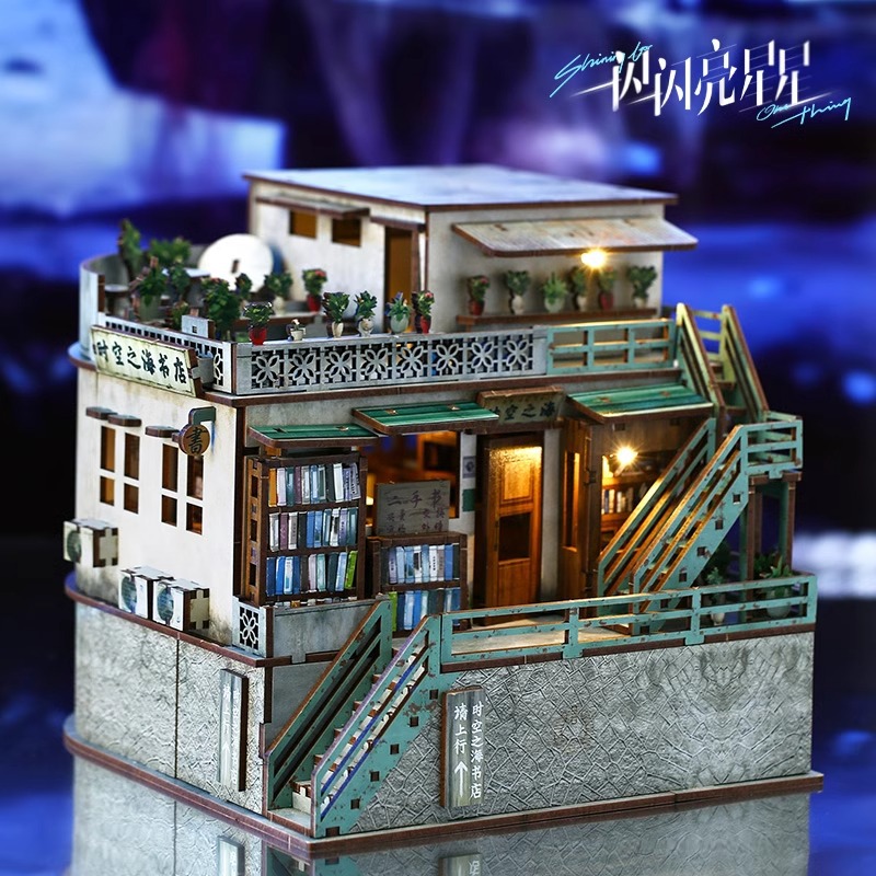 시간과 공간 서점의 바다 터치 모자이크 나무 모델 장식품 도매 "반짝이는 별" 수동 작은스토어 가기