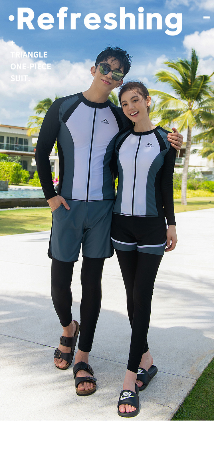 새로운 커플 의류 수영복 긴 소매 바지 세트 잠수복 서퍼 세트 플러스 사이즈 보수적 인 수영복스토어 가기