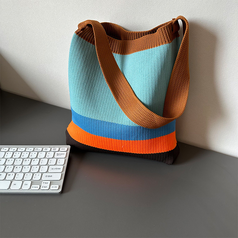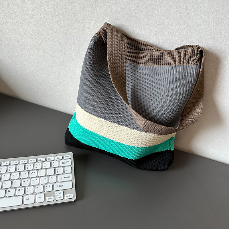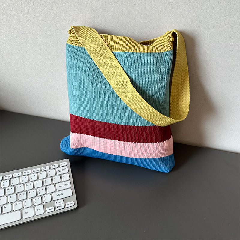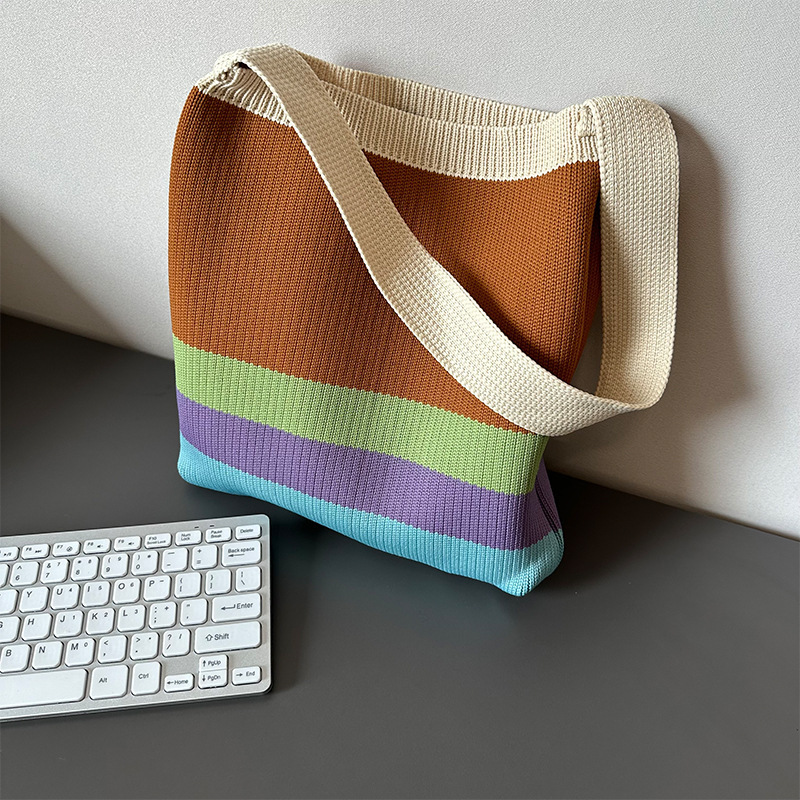 새로운 레인보우 컬러 니트 백 학생 한국 스타일 간단한 올 매치 스트라이프 숄더 백 토트 백 대용량 여성용 가방