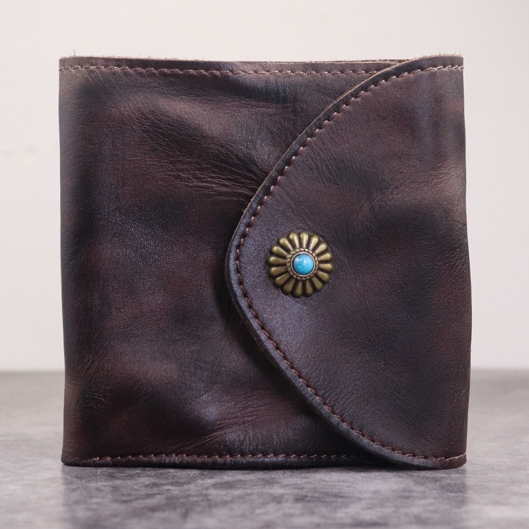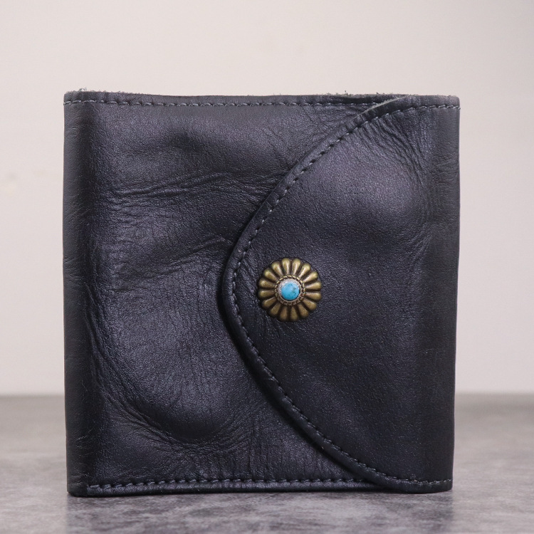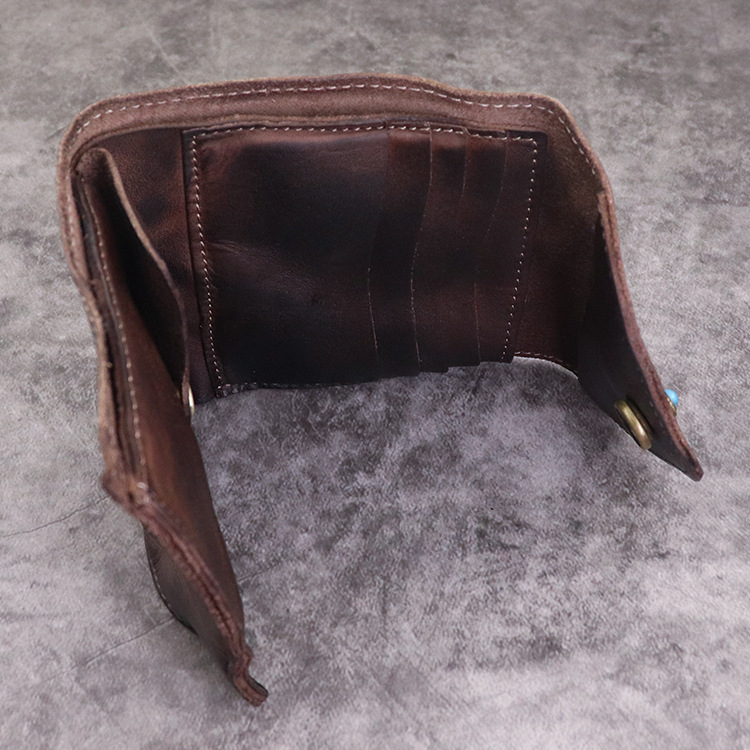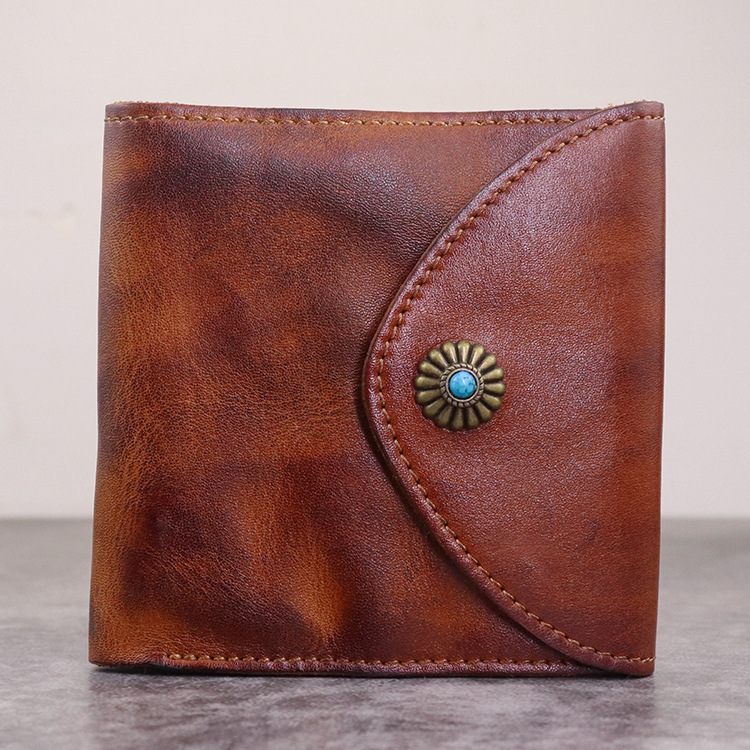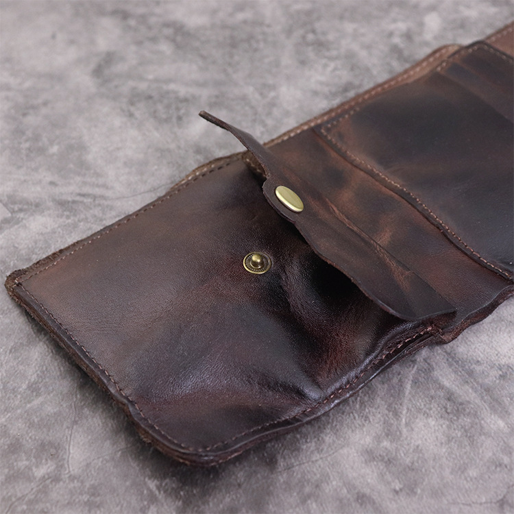 국경 새 남자의 긴 가죽 지갑 탑 레이어 Cowhide 레트로 트라이 폴드 대용량 다기능 동전 지갑