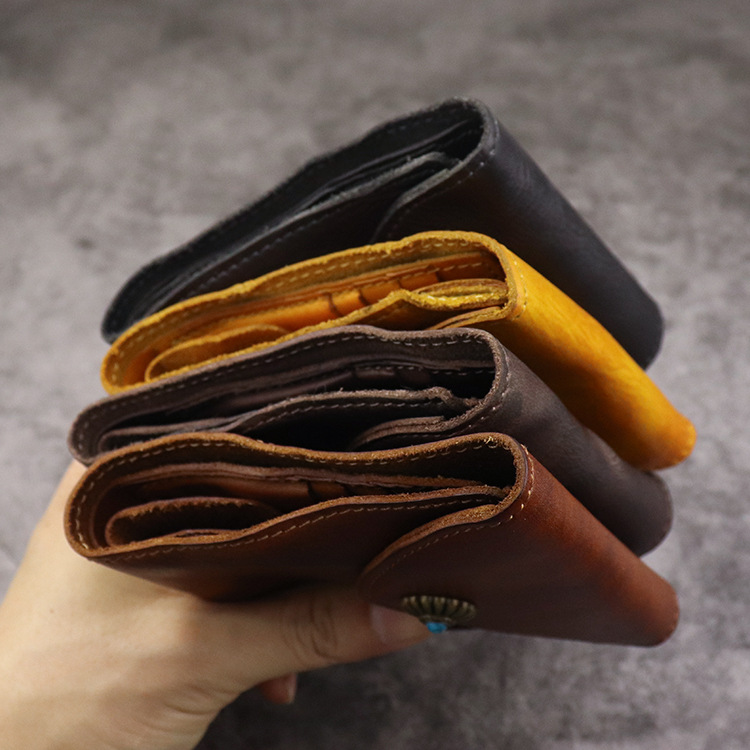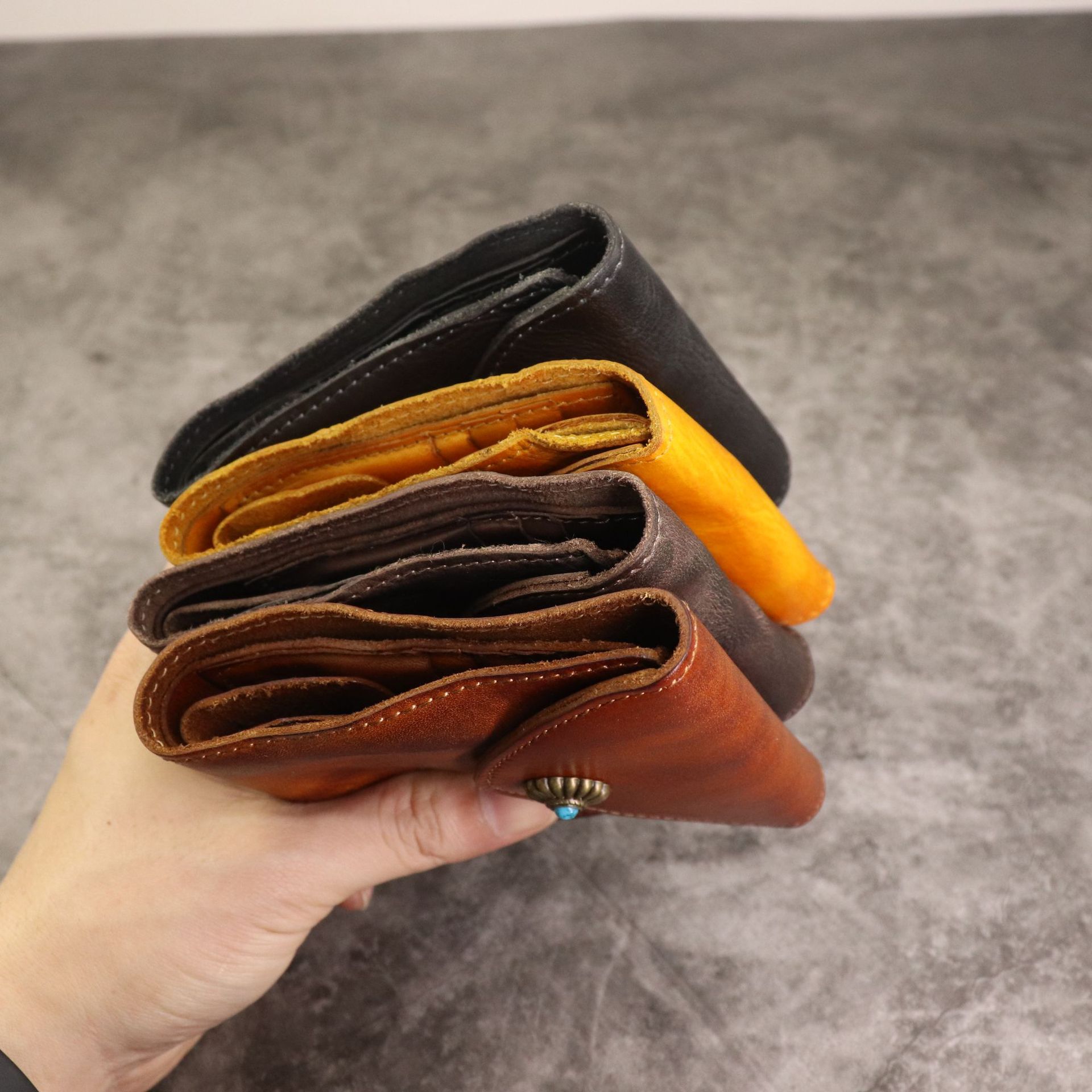 국경 새 남자의 긴 가죽 지갑 탑 레이어 Cowhide 레트로 트라이 폴드 대용량 다기능 동전 지갑스토어 가기