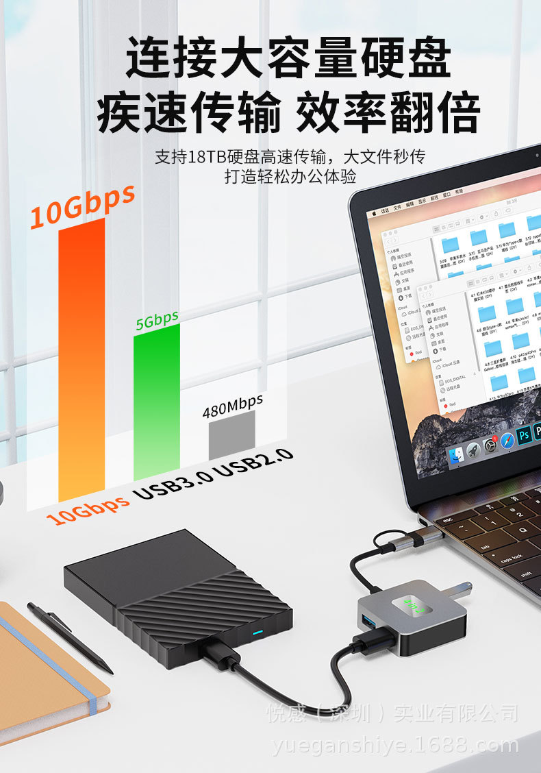 국경 간 Type-c3.2 허브 노트북 Gen2 허브 1 대 4 2 대 1 10Gbps 스플리터스토어 가기