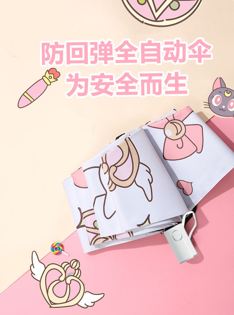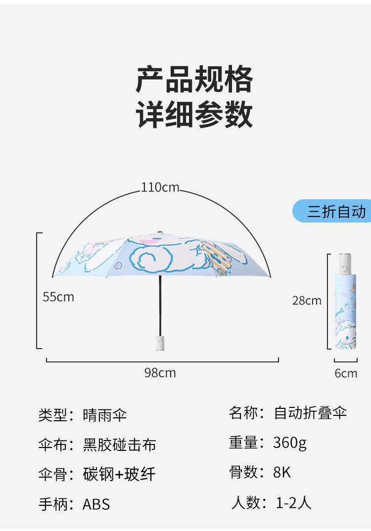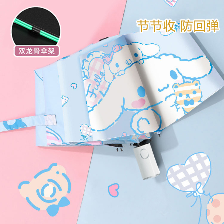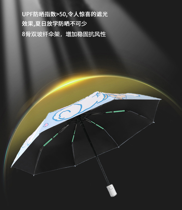 우산 완전 자동 절약 안전 반동 방지 어린이 우산 선 스크린 여성 접는 햇빛 검은 고무 태양 우산