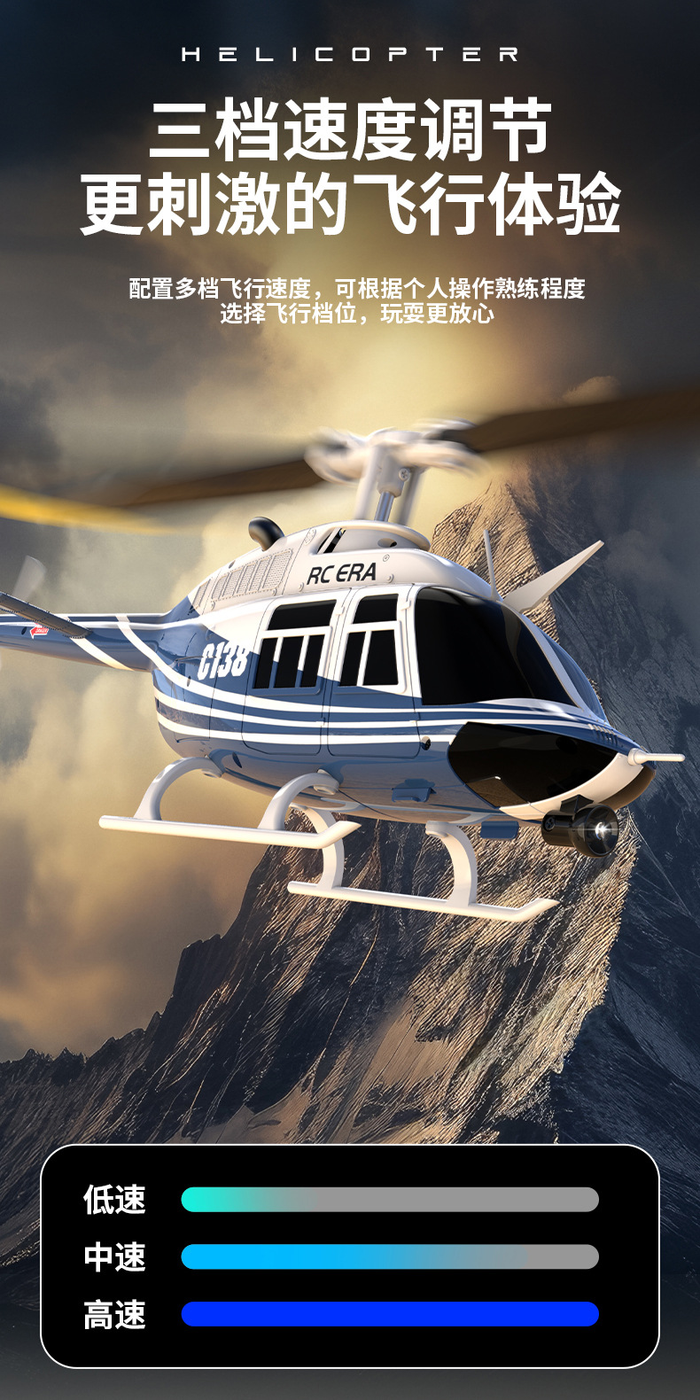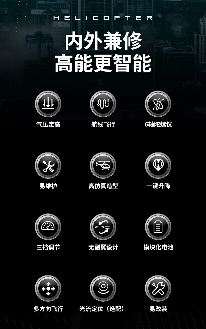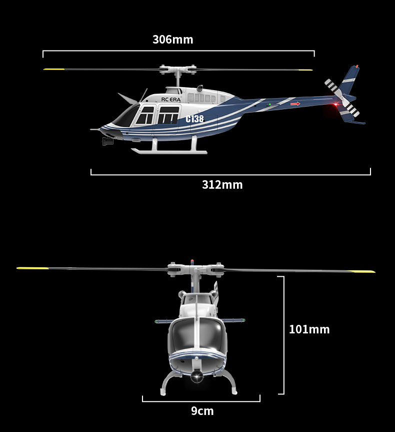 采用单桨无副翼设计,6轴电子陀螺仪增稳,并加入气压计定高,飞行更稳定,更容易操纵!超长续航时间!耐撞击!外形按真机等比例缩小,不但可以操控飞行也可以当摆件。C138续航时间可达到12分钟左右!(可选配光流定位,后续会新增配件,敬请期待!!!)