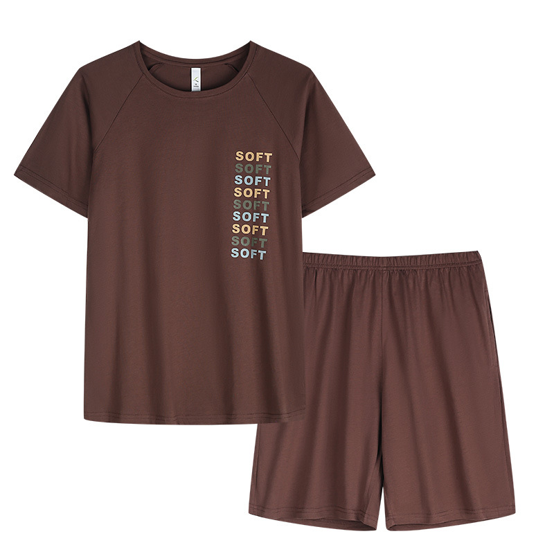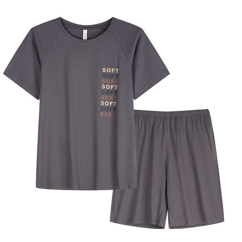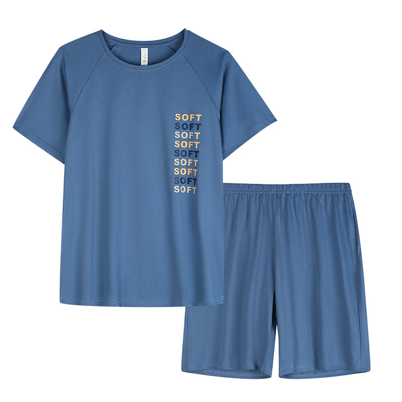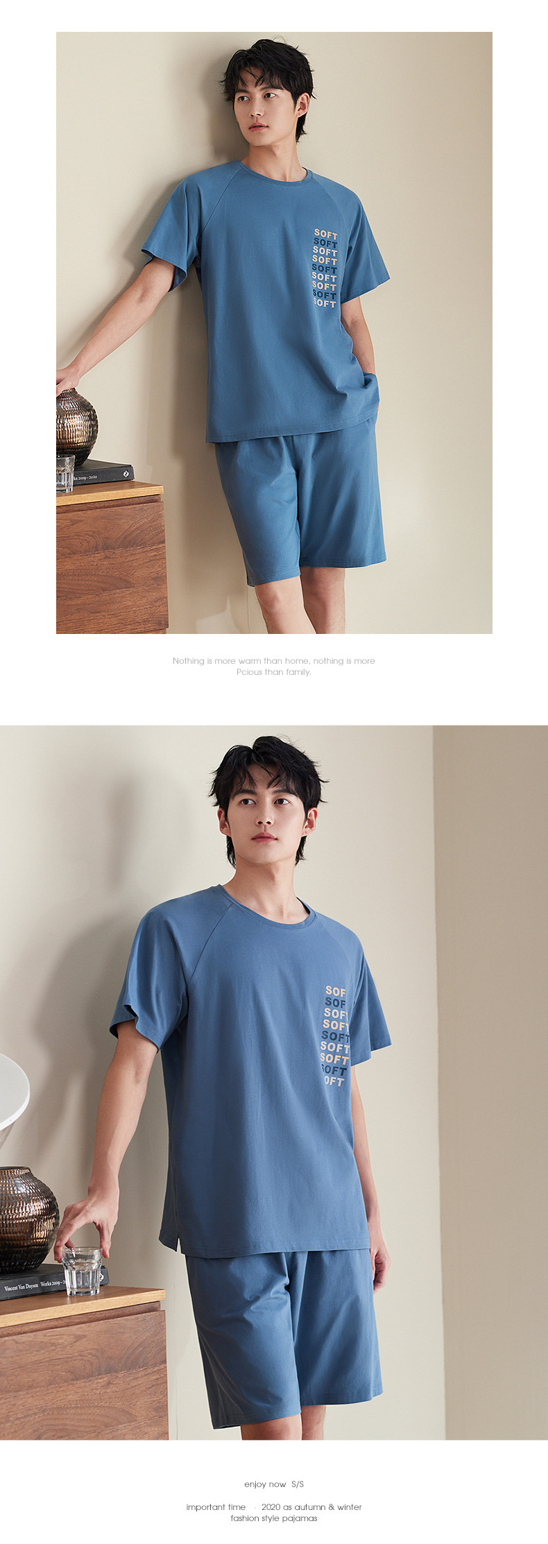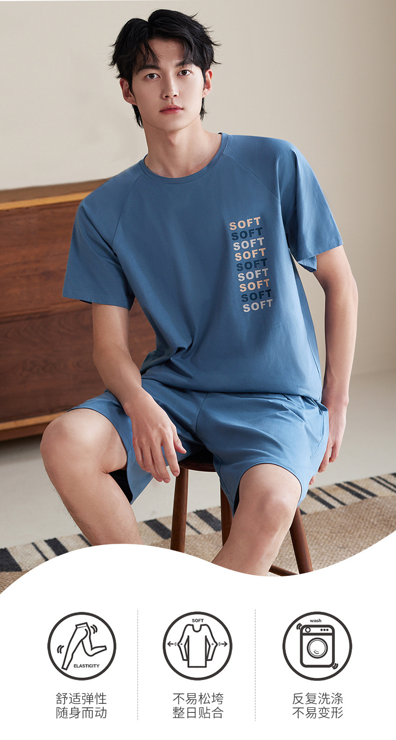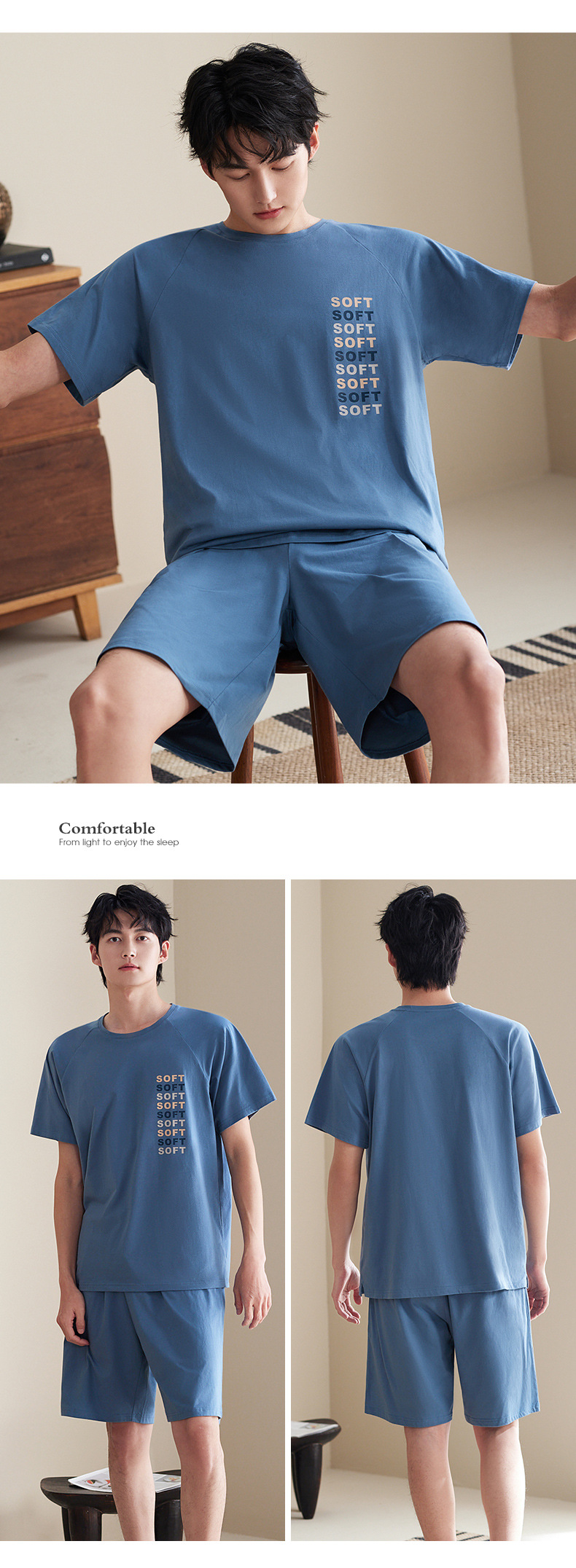 여름 남자 풀오버 크루 넥 반팔 반바지 단면 순면 단순 투피스 파자마