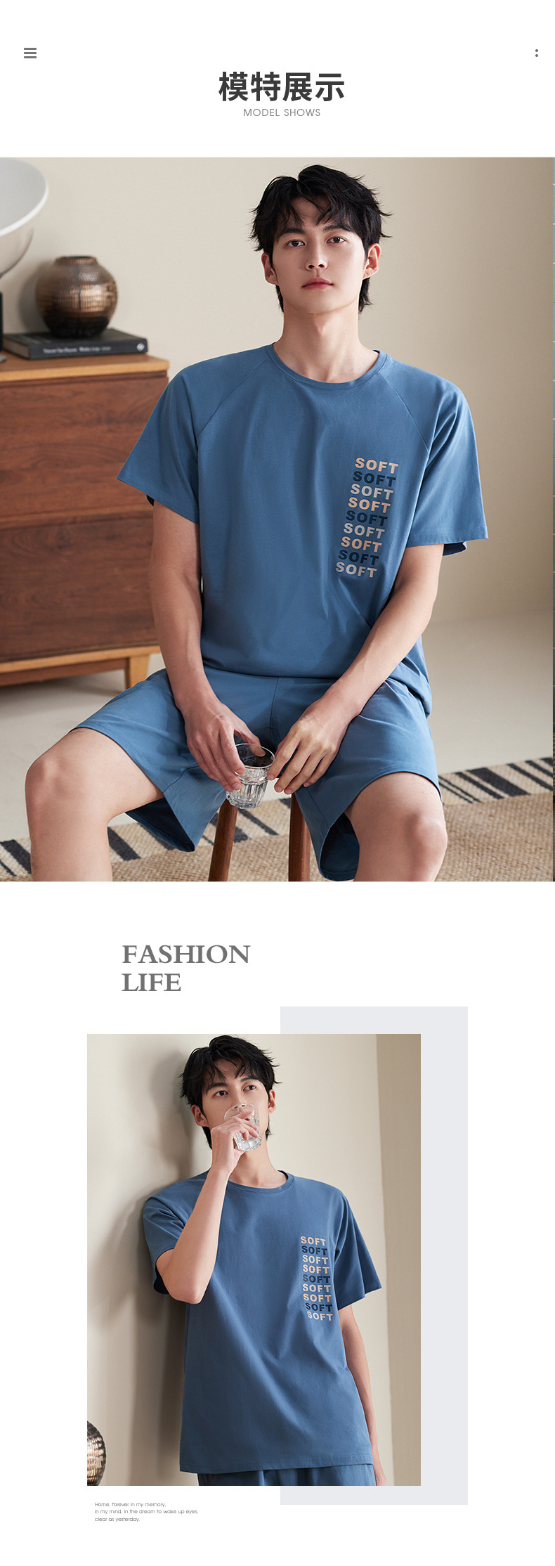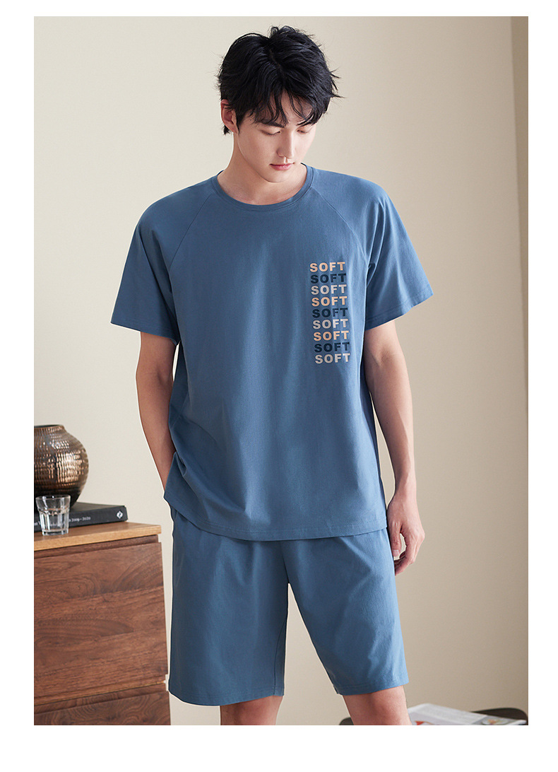 여름 남자 풀오버 크루 넥 반팔 반바지 단면 순면 단순 투피스 파자마스토어 가기