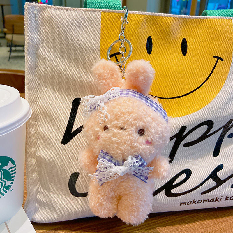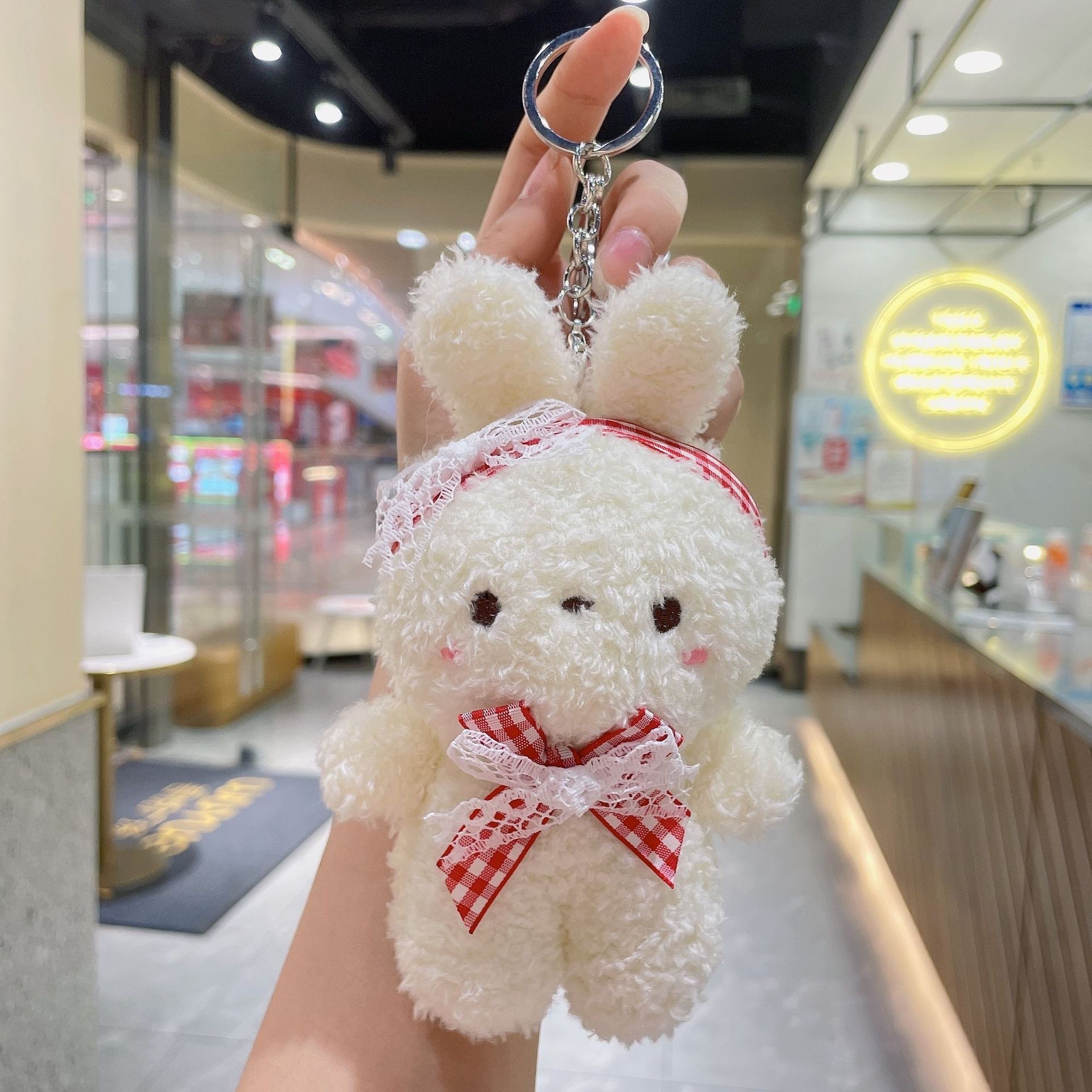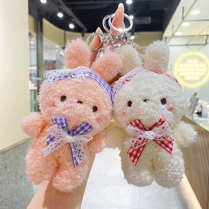 귀여운 봉제 토끼 키 체인 새로운 활 토끼 인형 만화 가방 펜던트 어린이 장난감스토어 가기