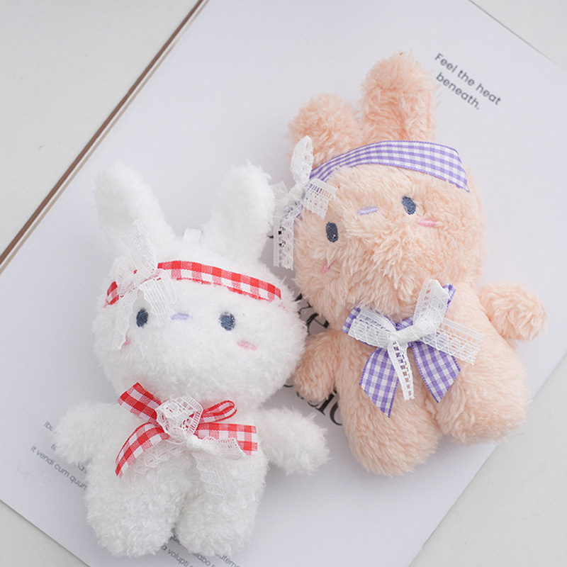 귀여운 봉제 토끼 키 체인 새로운 활 토끼 인형 만화 가방 펜던트 어린이 장난감