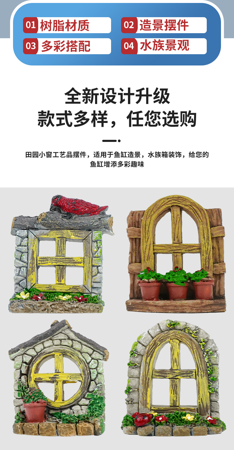 어항 조경 장식 시뮬레이션 목가적 인 작은 창 사진 프레임 액세서리 수지 문 및 창문 모래 테이블 목가적 인 꽃 창스토어 가기