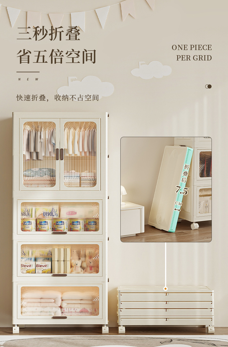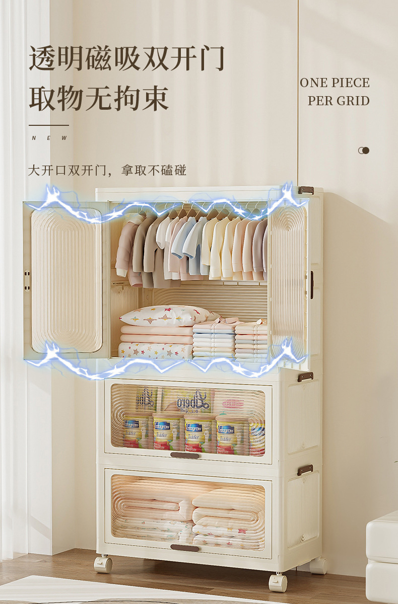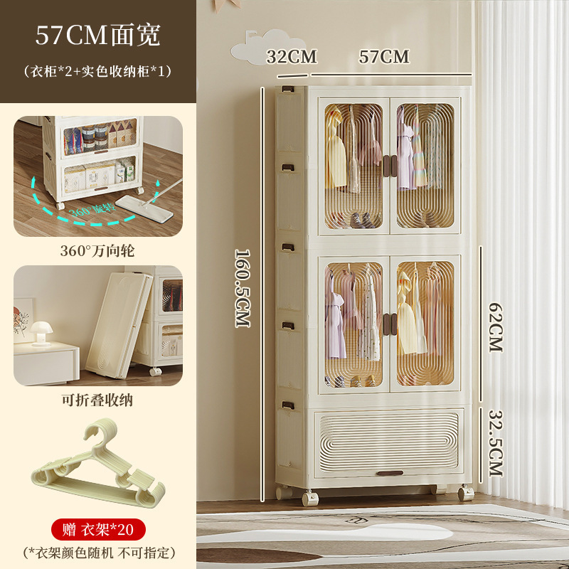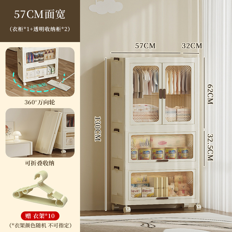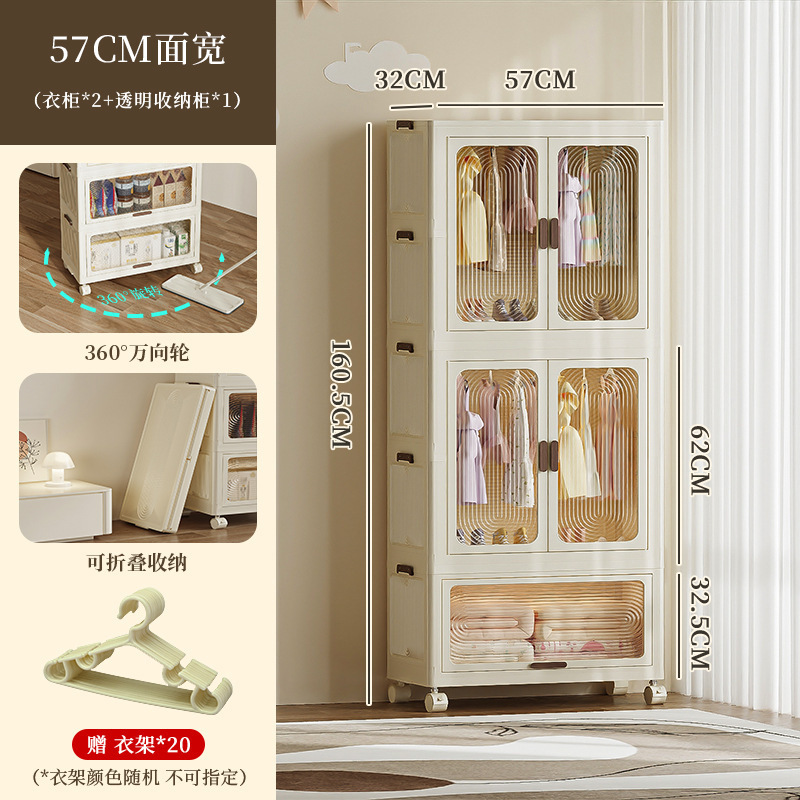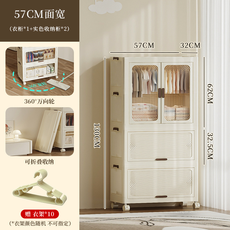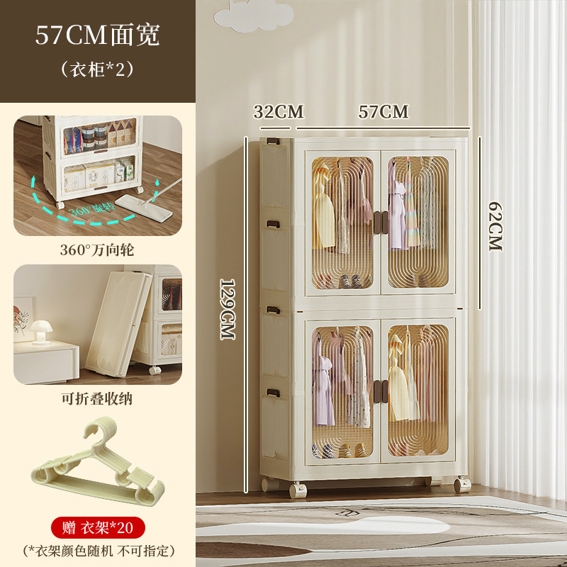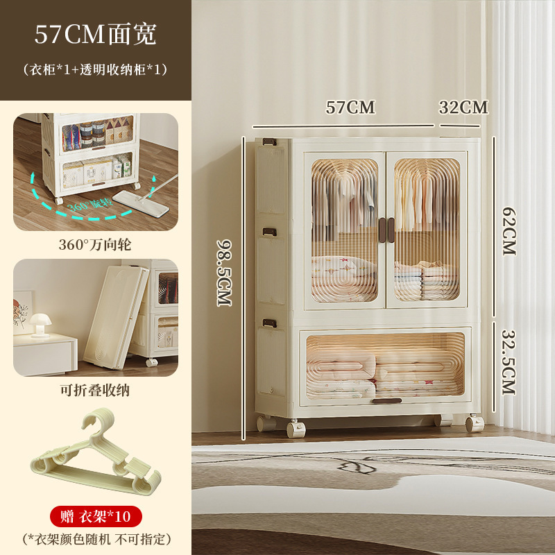 • 2942 57cm 1 층 옷장 2 층 접이식 캐비닛 투명 색상