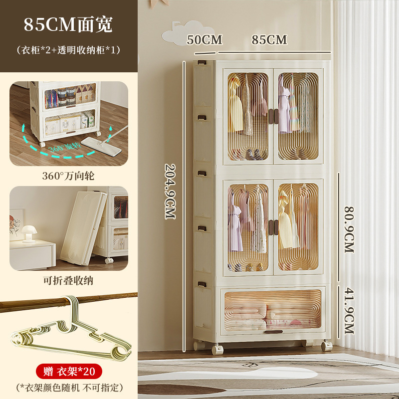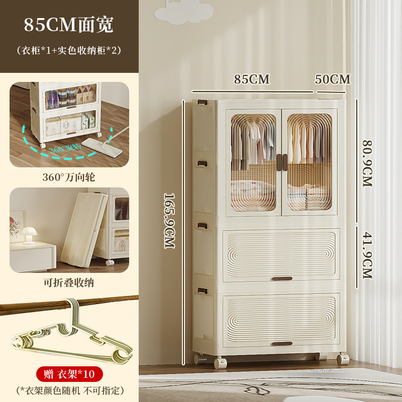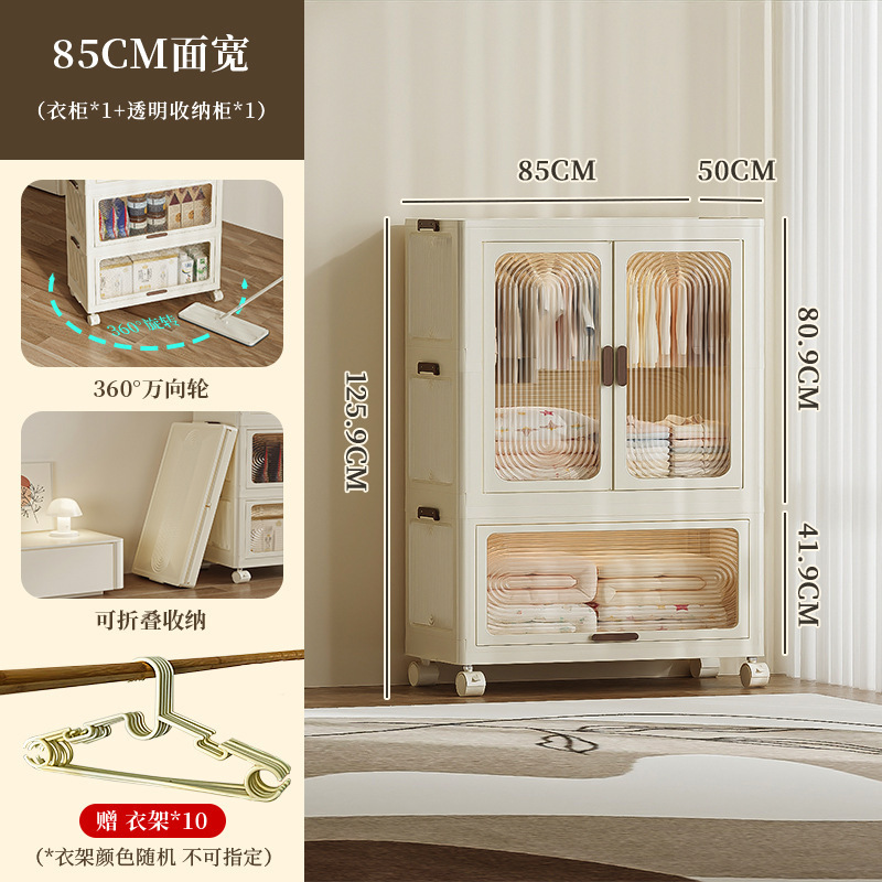 • 2965 2 층 옷장 85cm 층 접이식 캐비닛 투명 색상