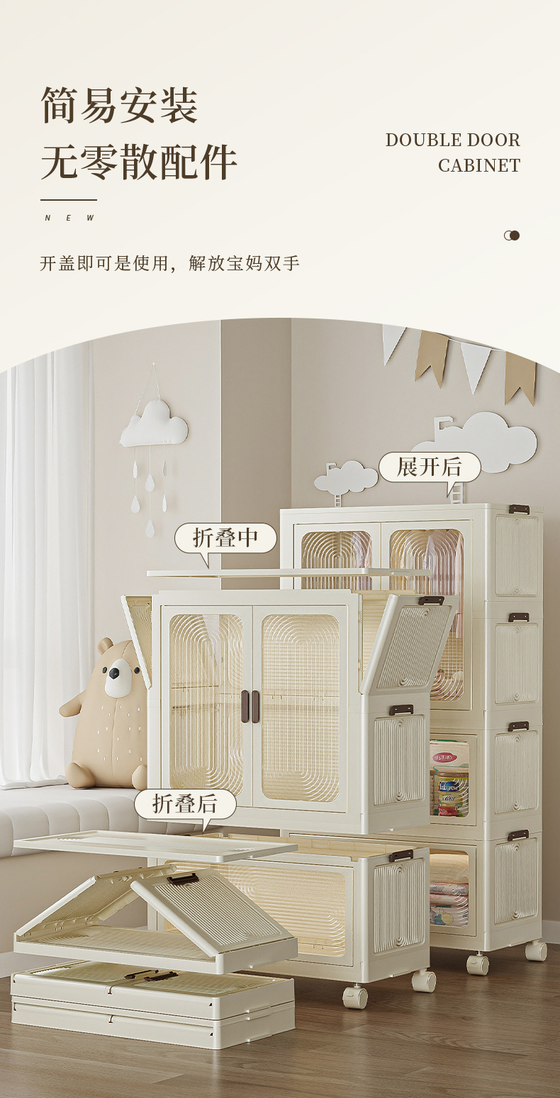 어린이 옷장 가정용 다층 접이식 보관 캐비닛 아기 옷 침실 보관 사물함