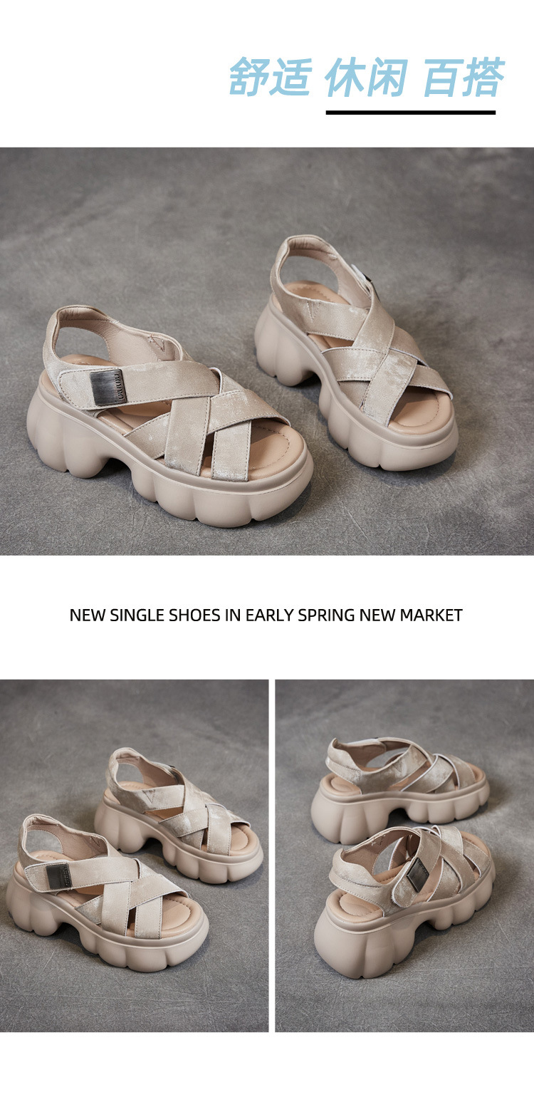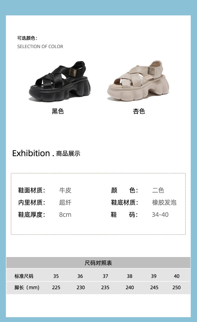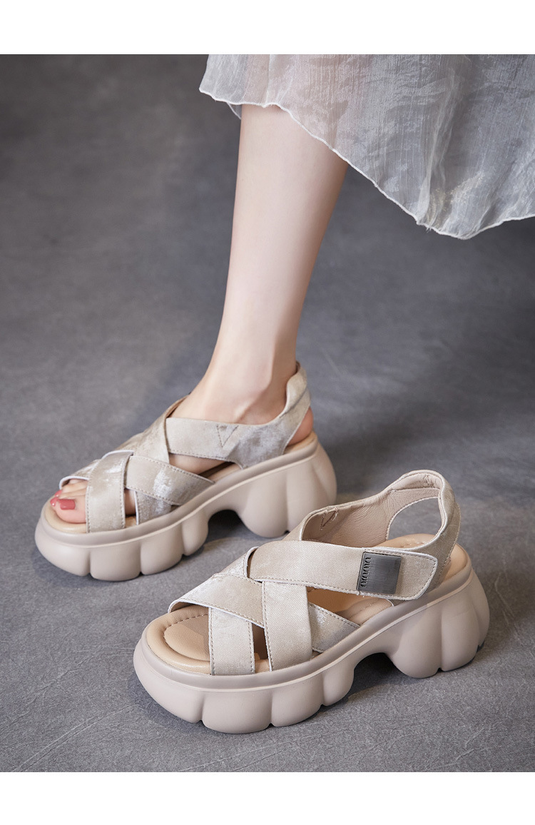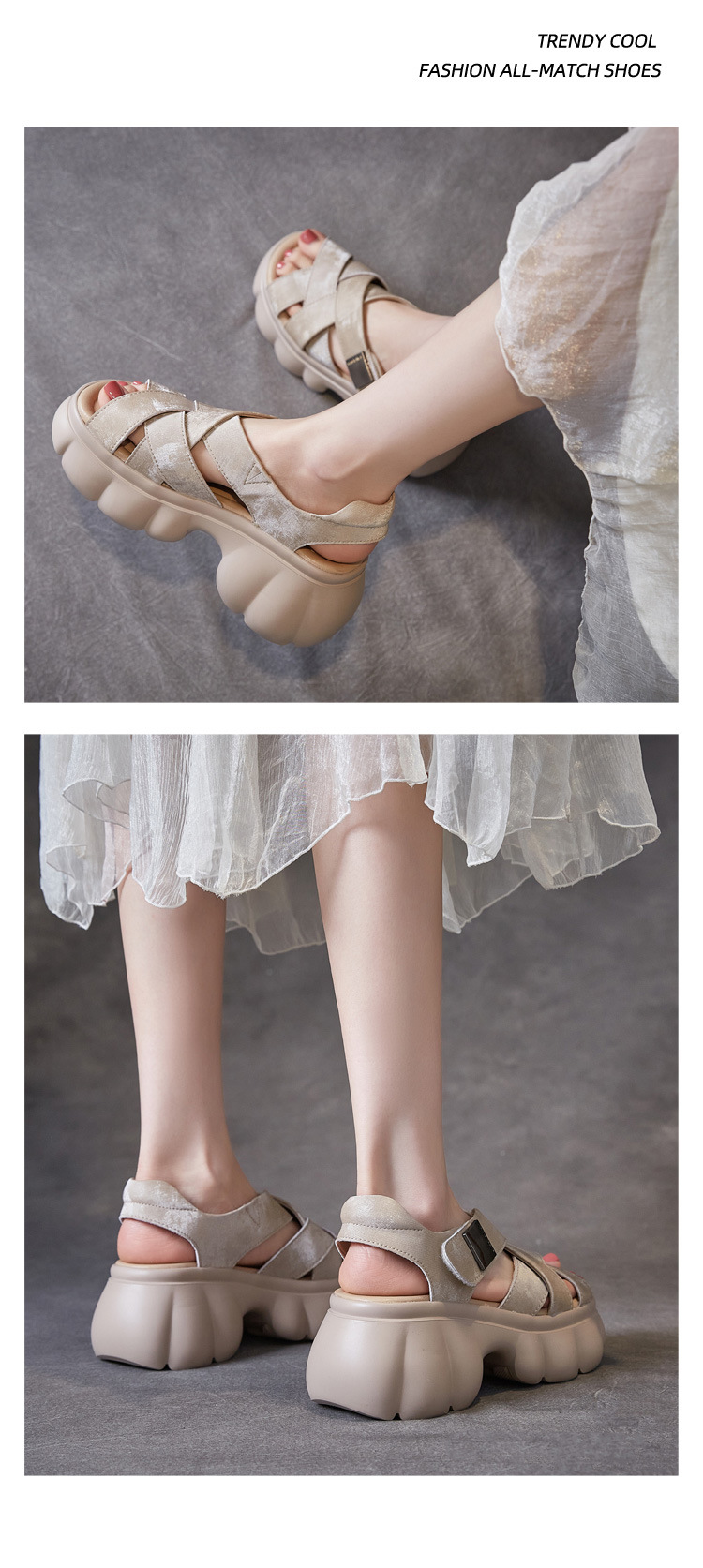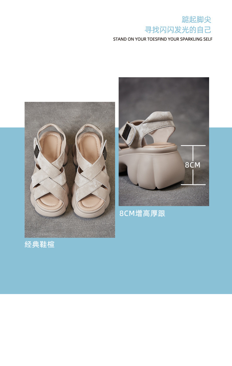 로마 샌들 여성용 2025 여름 신상 천연 가죽 벨크로 두꺼운 밑창 짜임새 있는 오픈토 샌들 8cm 키높이 여성화 트렌디스토어 가기