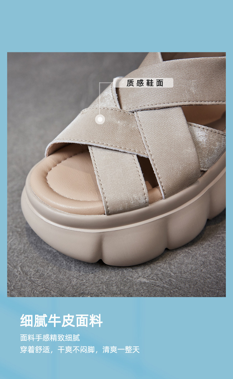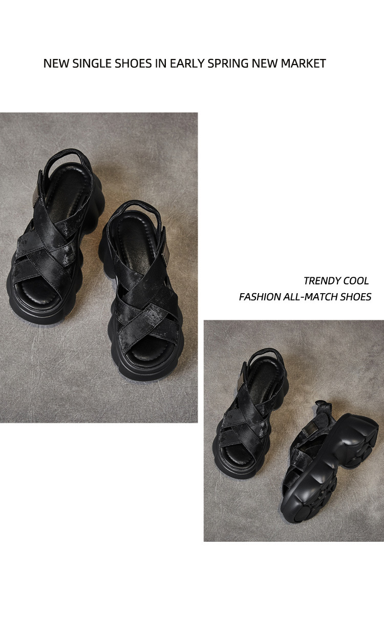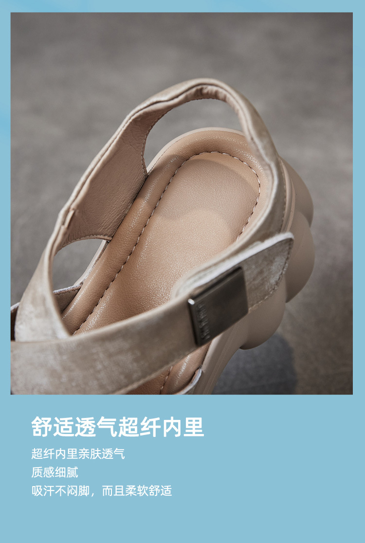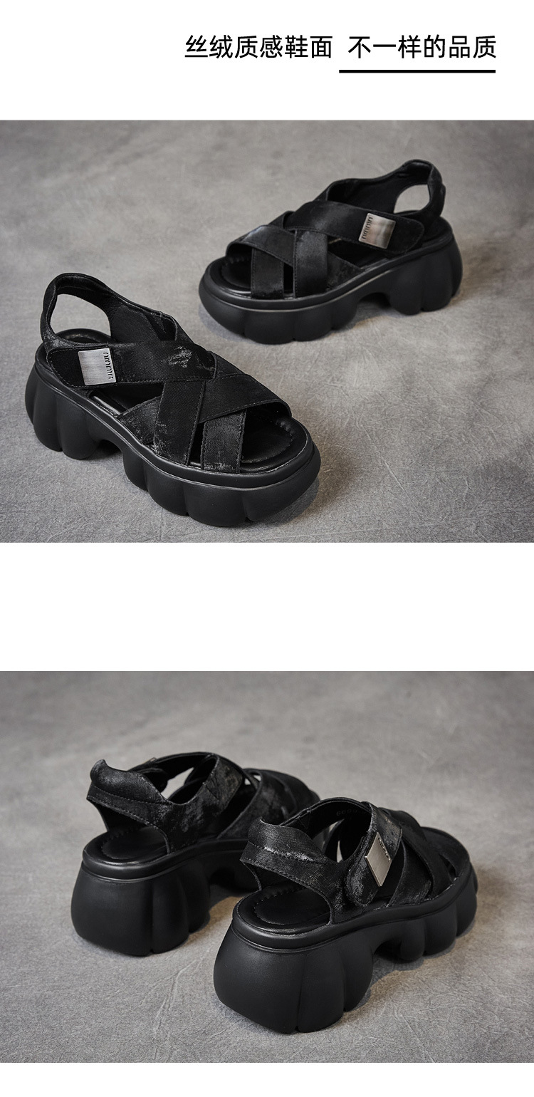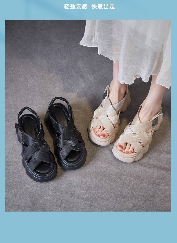 로마 샌들 여성용 2025 여름 신상 천연 가죽 벨크로 두꺼운 밑창 짜임새 있는 오픈토 샌들 8cm 키높이 여성화 트렌디스토어 가기