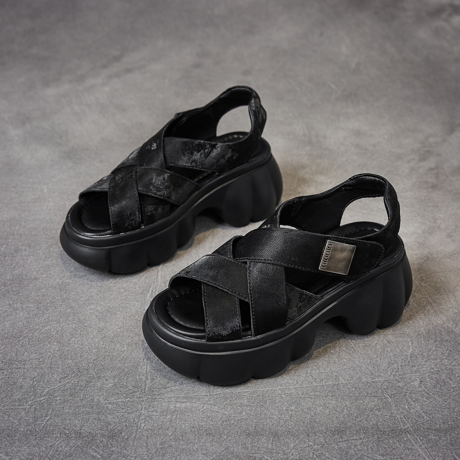 로마 샌들 여성용 2025 여름 신상 천연 가죽 벨크로 두꺼운 밑창 짜임새 있는 오픈토 샌들 8cm 키높이 여성화 트렌디
