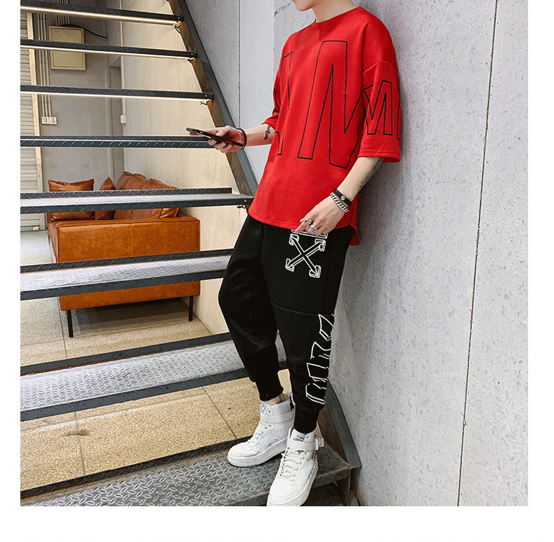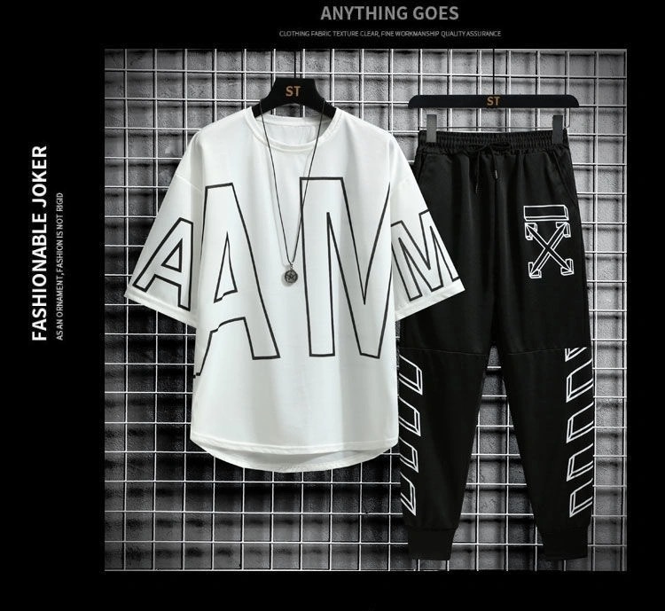 여름 캐주얼 스포츠웨어 세트 남자 거리 뉴 핸섬 올 매치 남자 반팔 티셔츠 옷 남자 세트스토어 가기