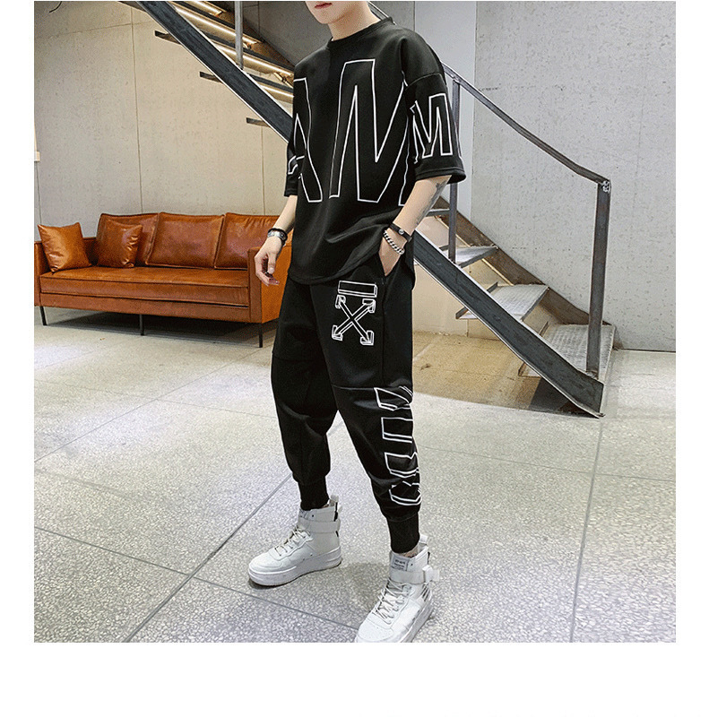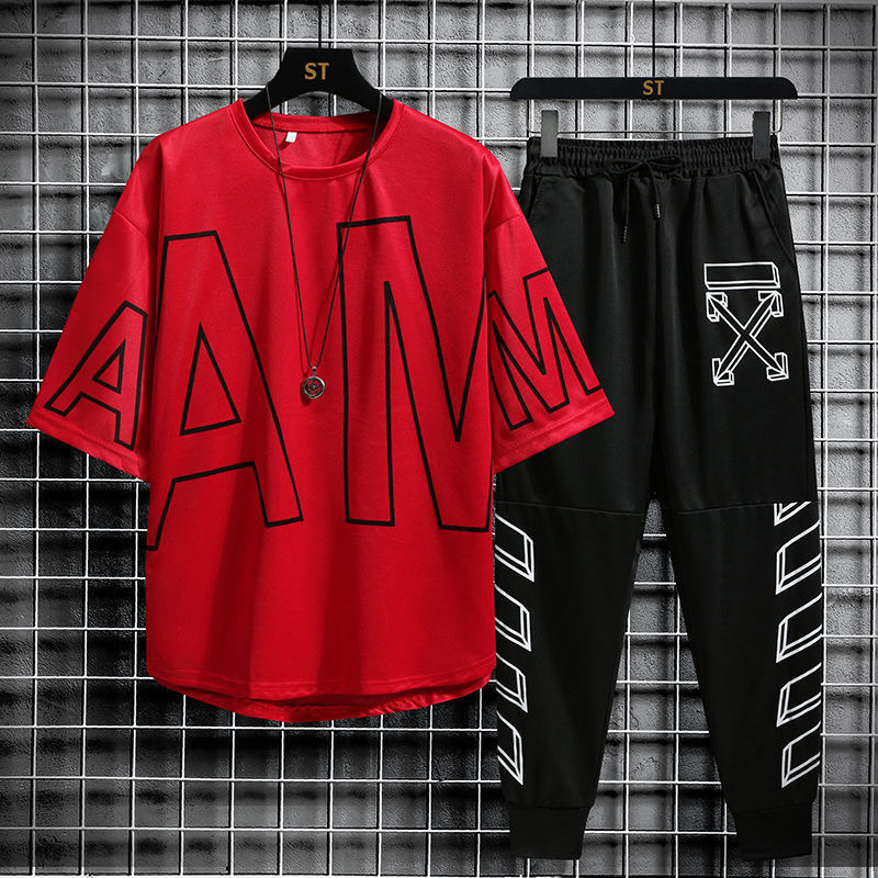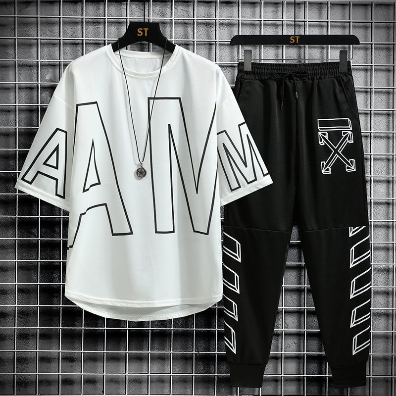 여름 캐주얼 스포츠웨어 세트 남자 거리 뉴 핸섬 올 매치 남자 반팔 티셔츠 옷 남자 세트