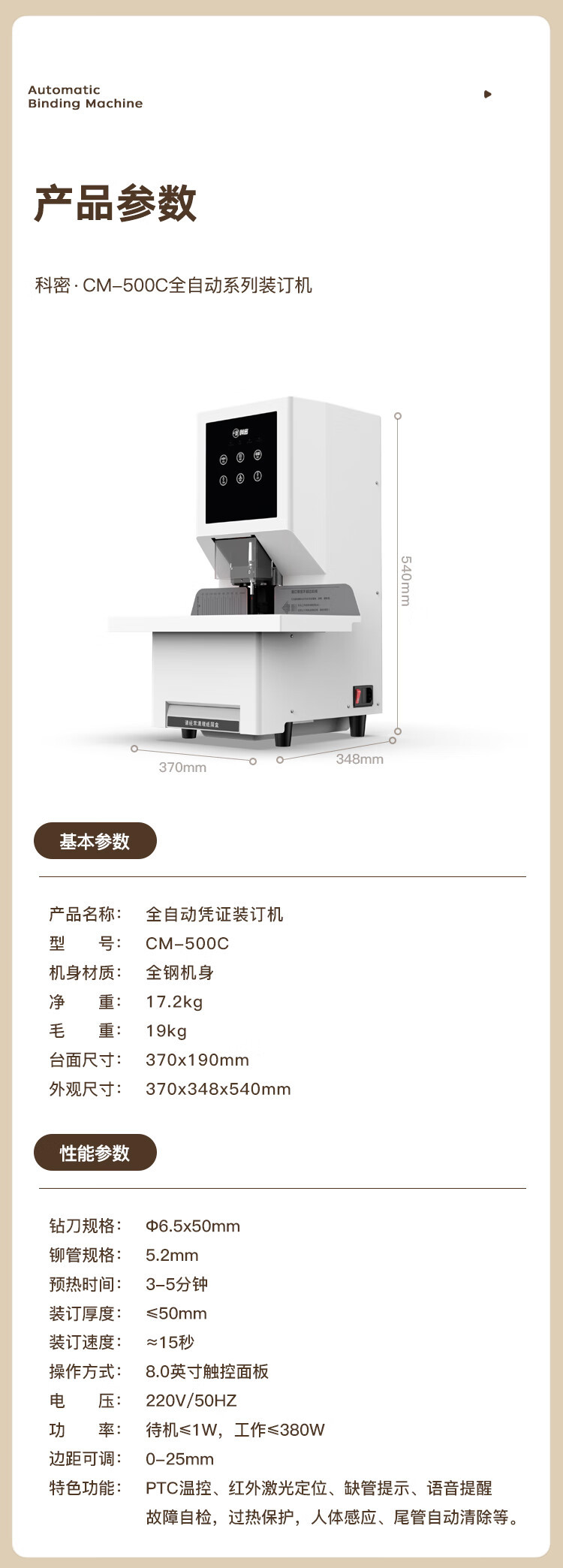 혜성 (혜성) 자동 금융 바우처 바인딩 기계 문서 파일 펀칭 기계 CM-500C스토어 가기