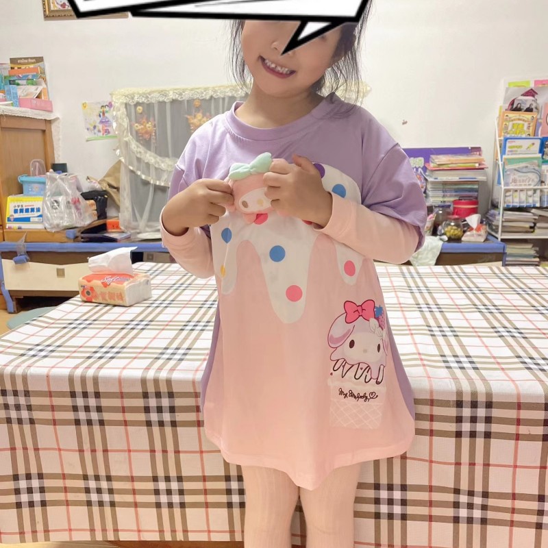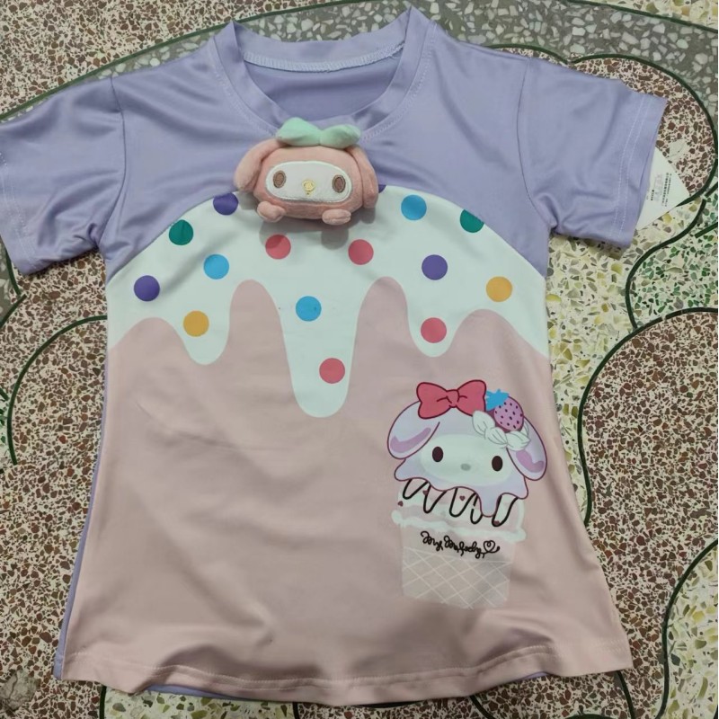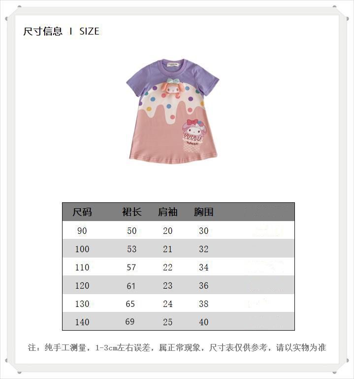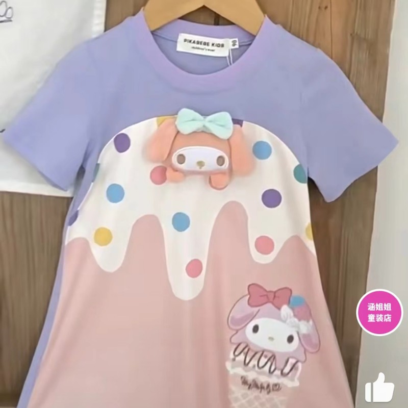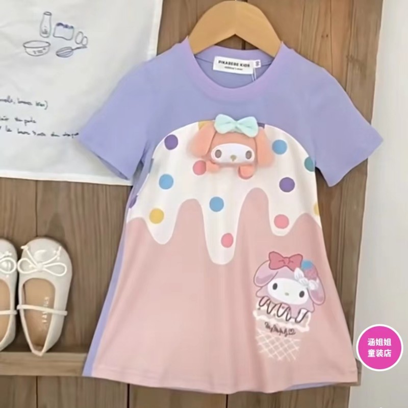 여름 새로운 여름 신선한 소녀의 원피스 컬러 웨이브 도트 아이스크림 입체 멀로티 인형 티셔츠 원피스스토어 가기