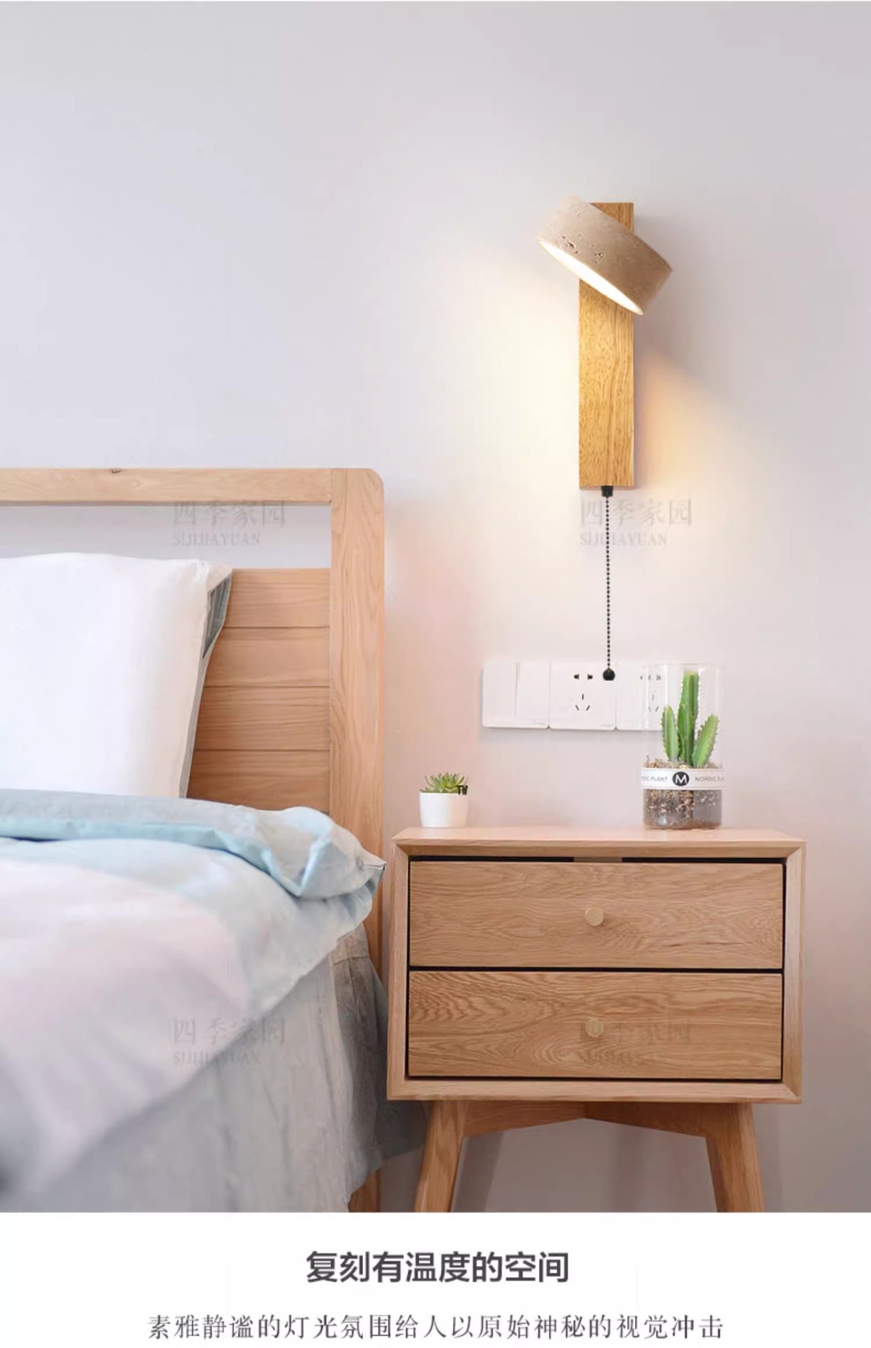 풀 와이어 스위치가있는 침실 침실 벽 램프 회전 가능한 프랑스 중간 고대 스타일 솔리드 우드 빈티지 램프 크림 스타일스토어 가기