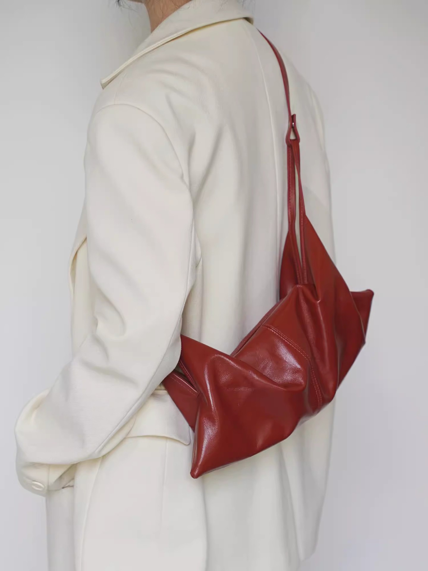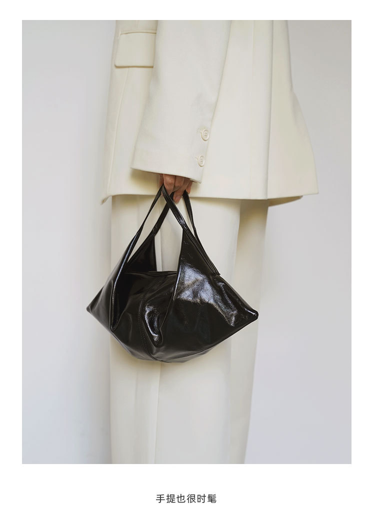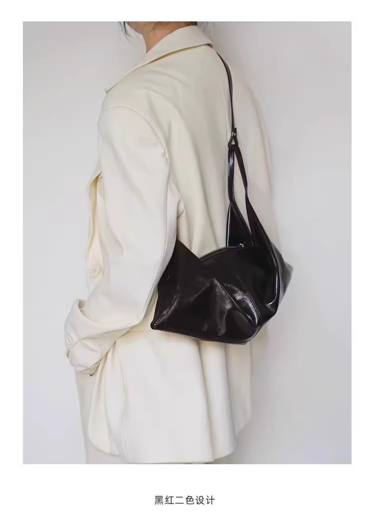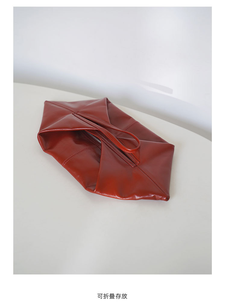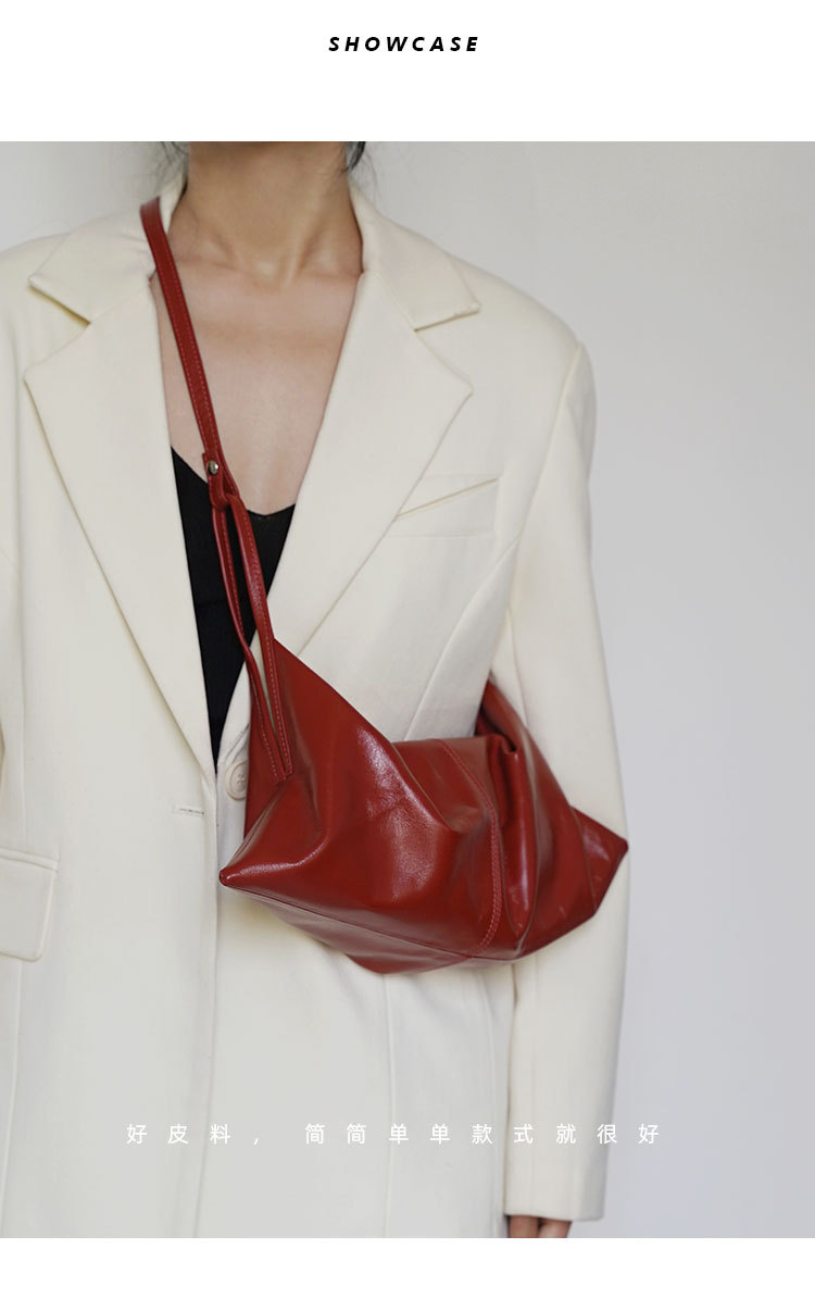 한국 스타일 Ins 스타일 틈새 디자인 탑 레이어 오일 왁스 부드러운 가죽 게으른 스타일 어깨 크로스 바디 휴대용 경적 가방 접는 가방스토어 가기