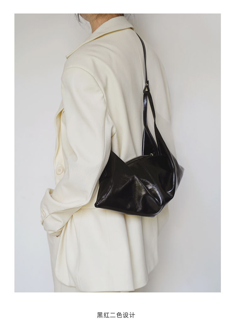 한국 스타일 Ins 스타일 틈새 디자인 탑 레이어 오일 왁스 부드러운 가죽 게으른 스타일 어깨 크로스 바디 휴대용 경적 가방 접는 가방