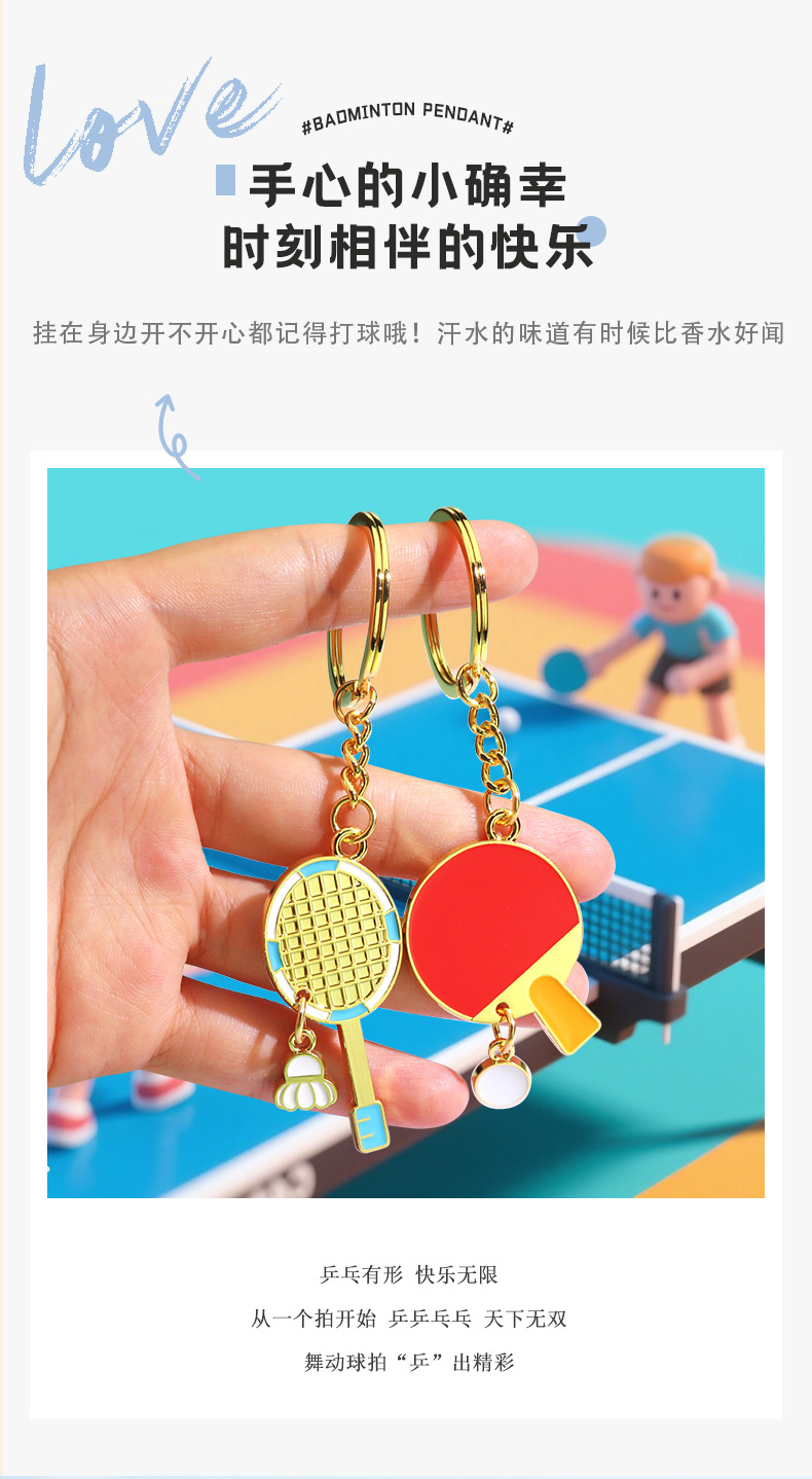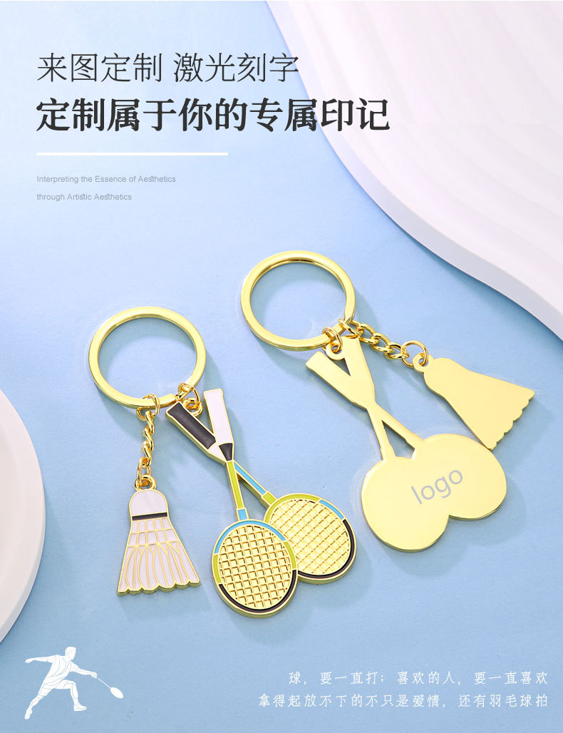 귀여운 미니 배드민턴 키체인 펜던트, 금속 작은 선물, 스포츠 클럽을 위한 창의적인 선물 맞춤 제작