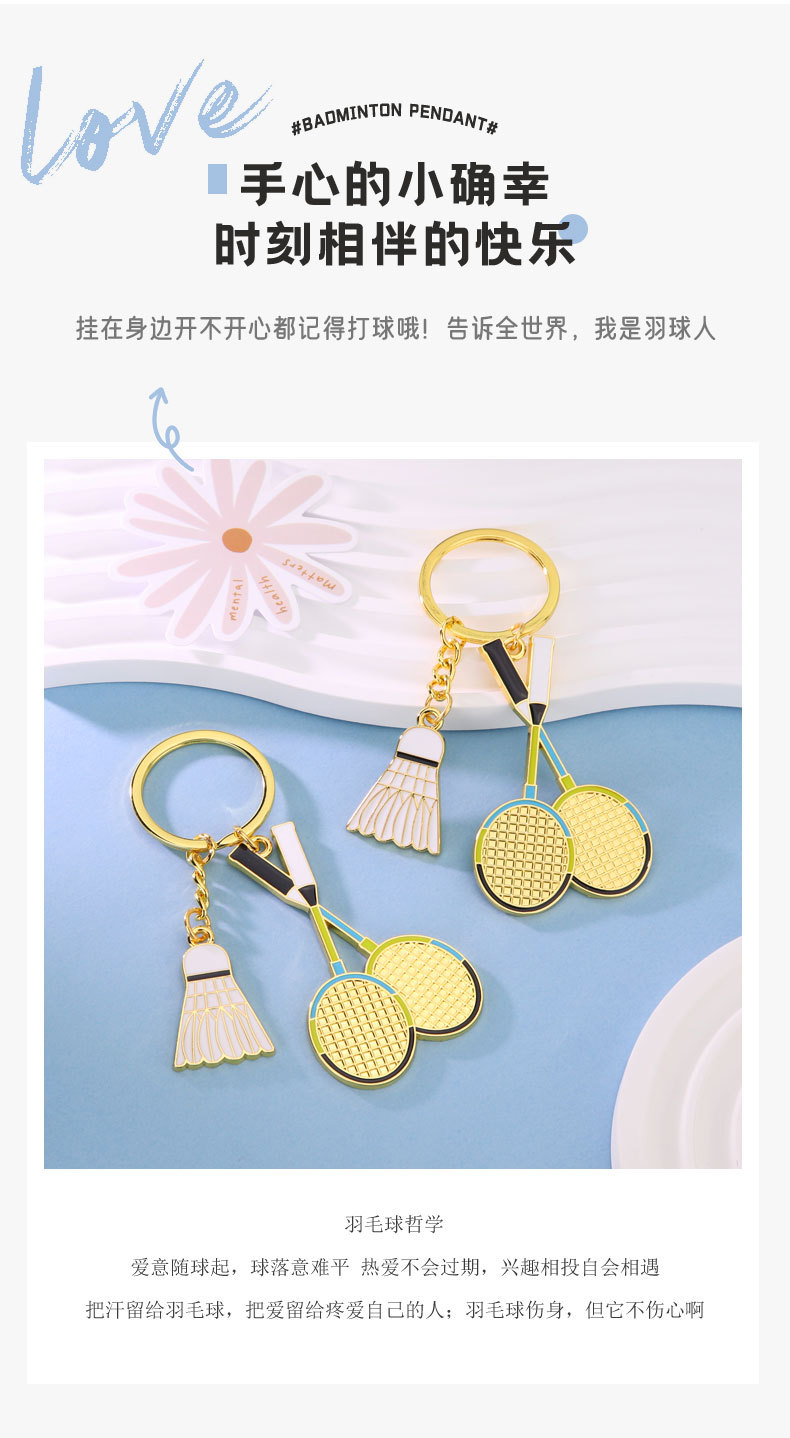 귀여운 미니 배드민턴 키체인 펜던트, 금속 작은 선물, 스포츠 클럽을 위한 창의적인 선물 맞춤 제작스토어 가기