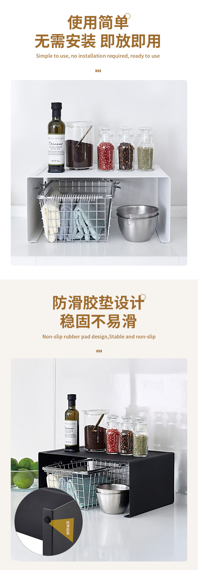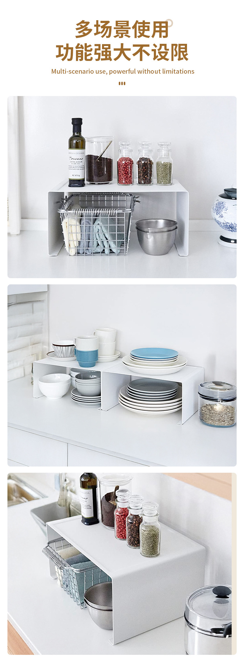 일본식 간단한 확장 가능한 카운터 탑 스토리지 랙 주방 잡화 스토리지 랙 가정용 데스크탑 마무리 스토리지 랙
