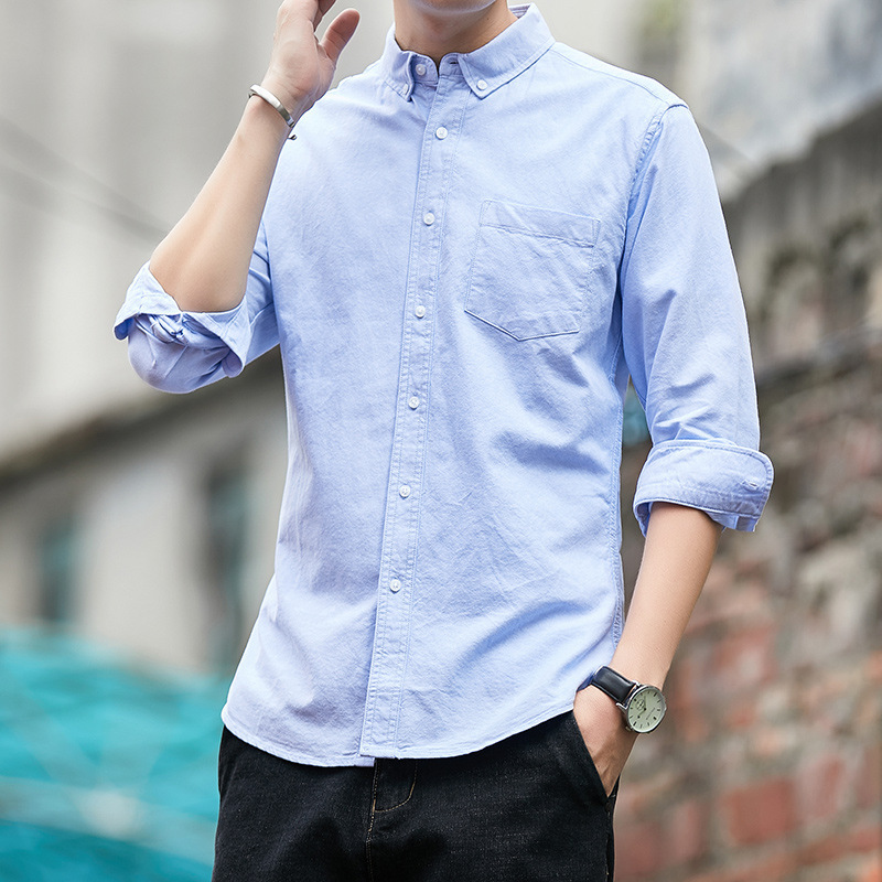 면 남성 셔츠 긴 소매 2024 새로운 봄 옥스포드 천 단색 남성 비즈니스 캐주얼 코튼 셔츠스토어 가기