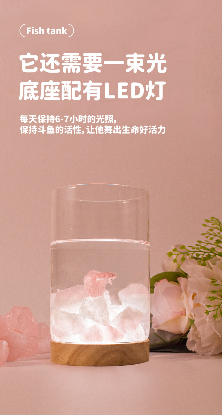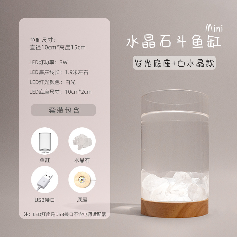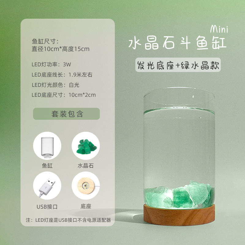 크리스탈 스톤 두 물고기 탱크 타이 두 물고기 작은 데스크탑 탱크 창조적 인 마이크로 풍경 밤 빛 선물 좋은 달빛