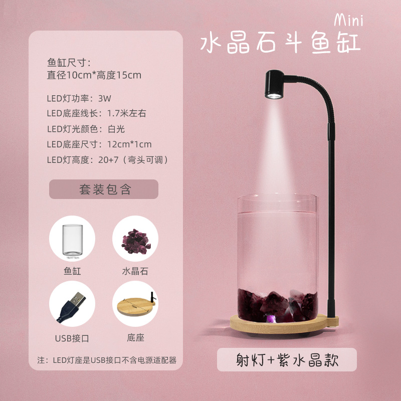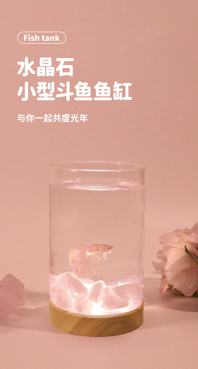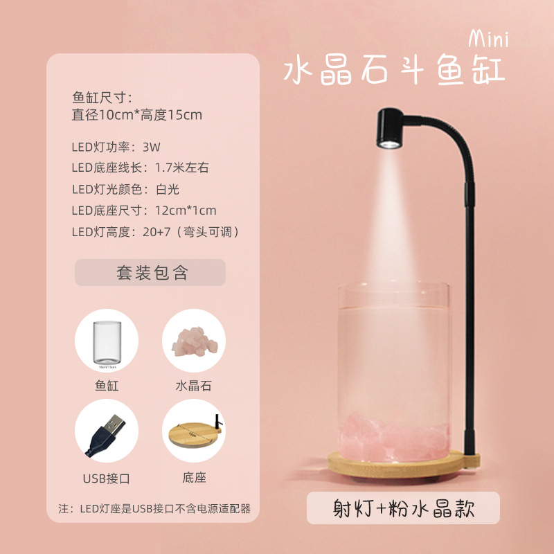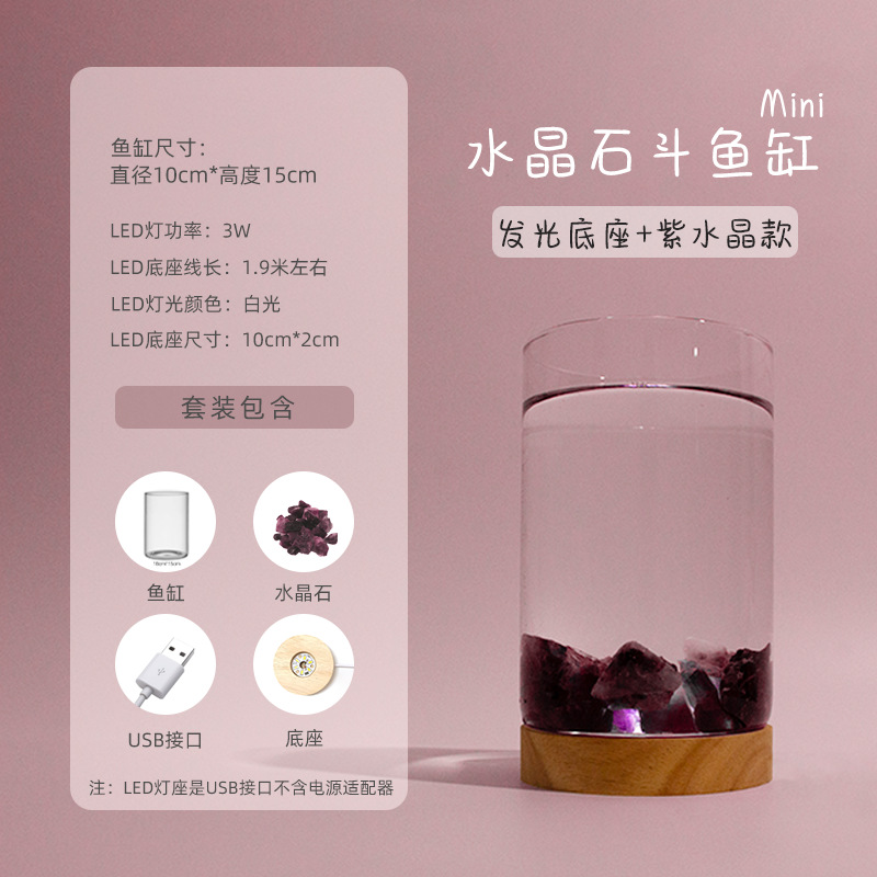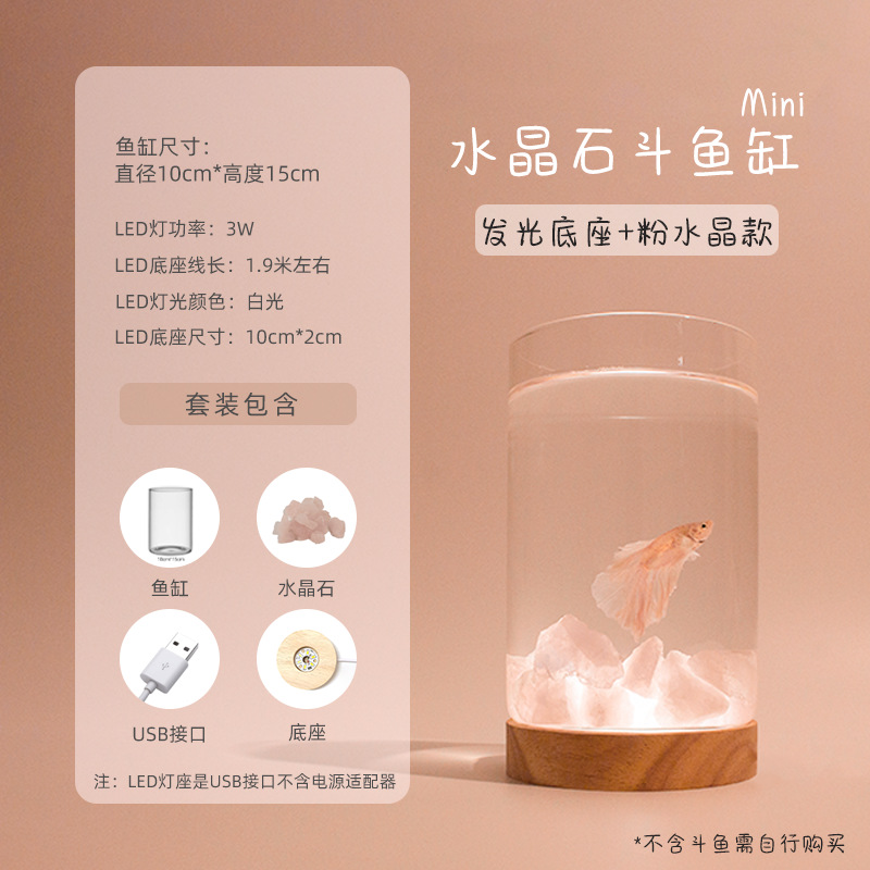 크리스탈 스톤 두 물고기 탱크 타이 두 물고기 작은 데스크탑 탱크 창조적 인 마이크로 풍경 밤 빛 선물 좋은 달빛스토어 가기