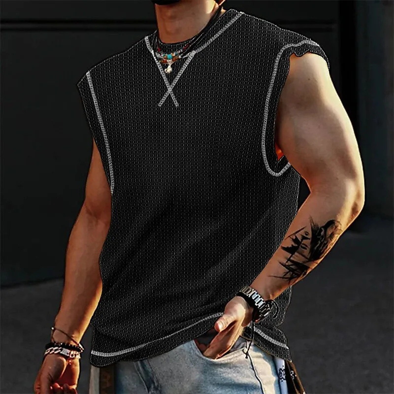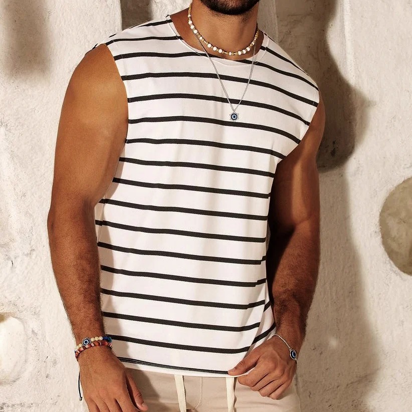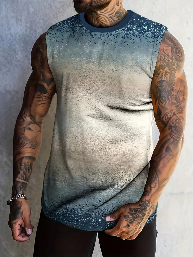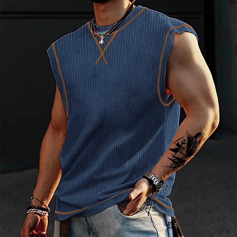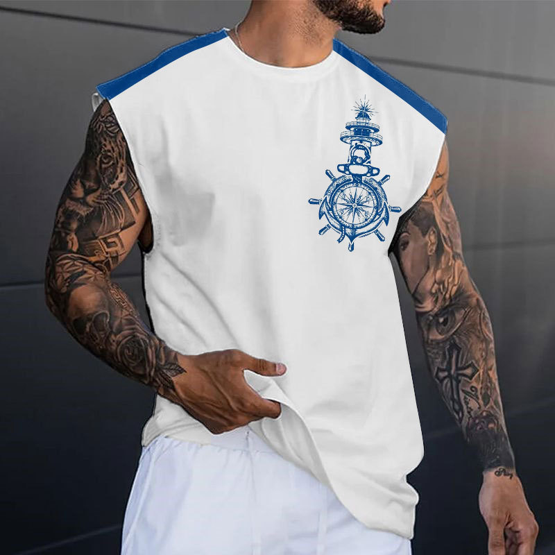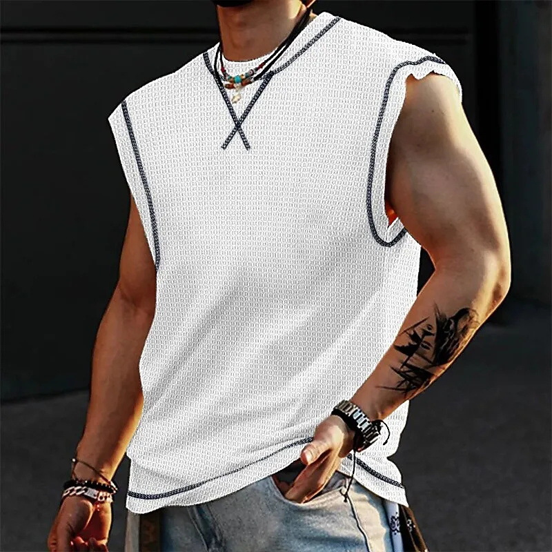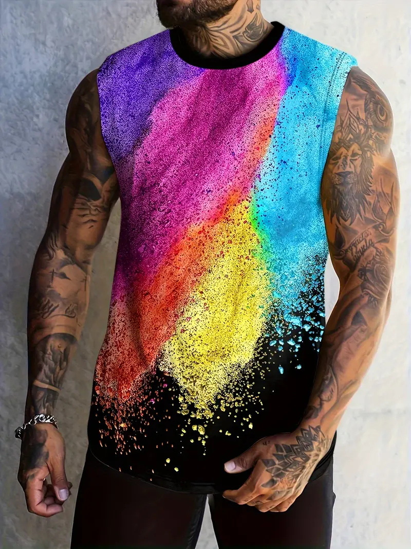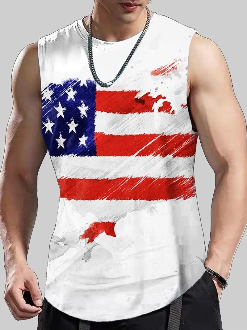 2024 여름 민소매 티셔츠 남성용 느슨한 허리 코트 스포츠 조끼 인 패션 브랜드 슬림 핏 트렌디 프린트 탑 MG2스토어 가기