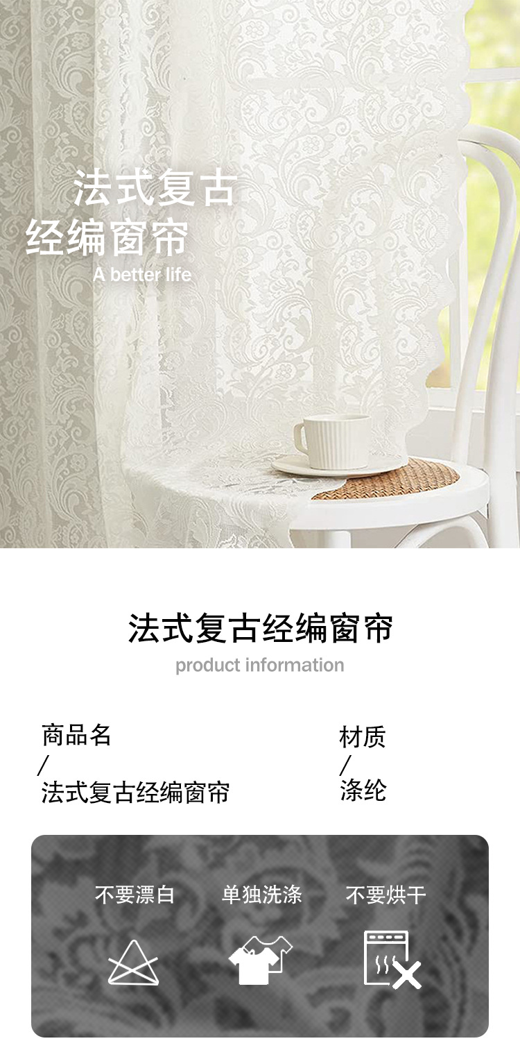 1pc 거실과 침실 장식 창 화면 비 천공 파티션 거즈 커튼 1 개 프렌치 레트로 레이스 거즈 커튼스토어 가기