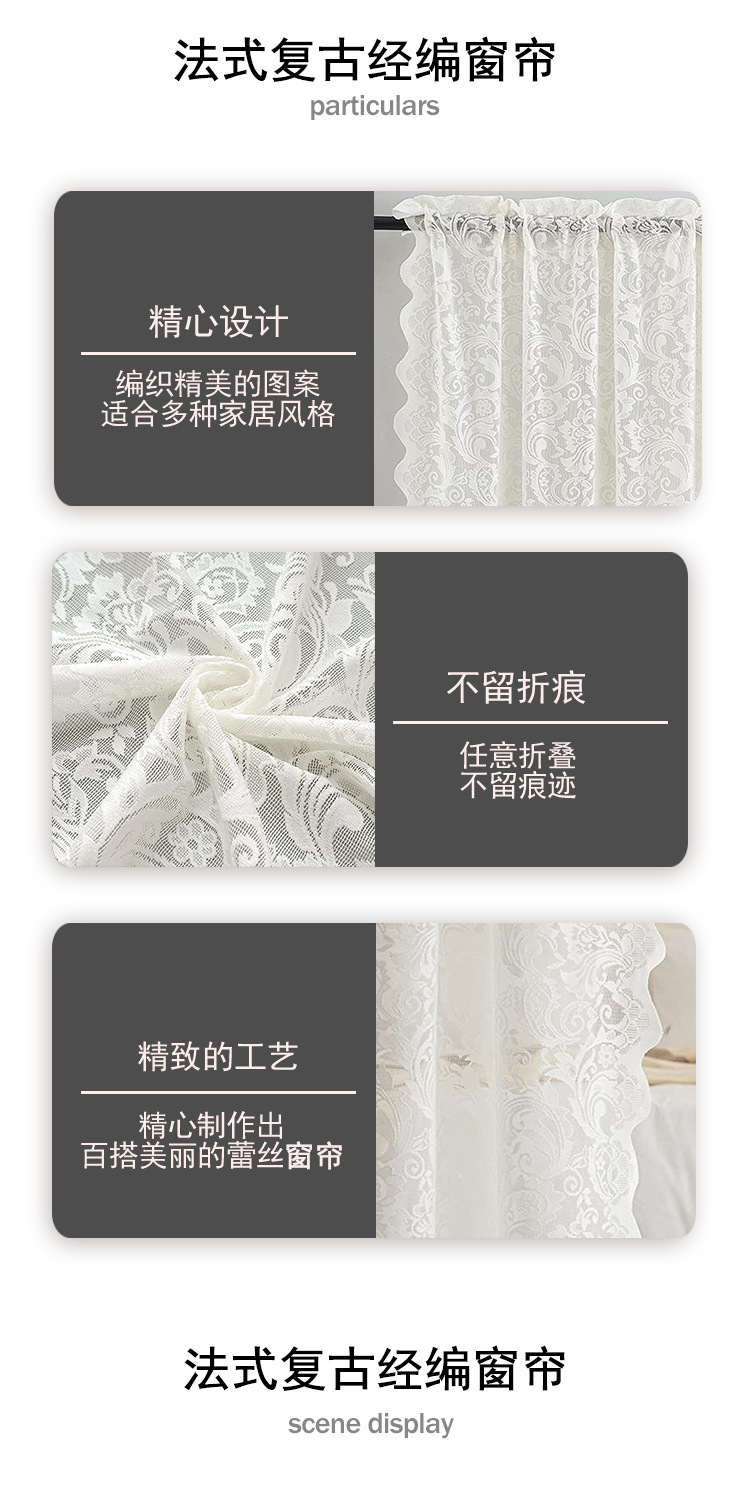 1pc 거실과 침실 장식 창 화면 비 천공 파티션 거즈 커튼 1 개 프렌치 레트로 레이스 거즈 커튼