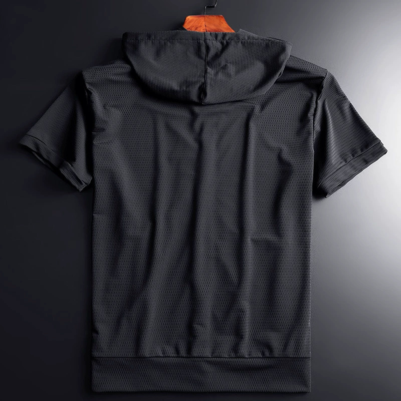 여름 얇은 아이스 실크 후드 티셔츠 남자 반 소매 지퍼 느슨한 카디건 짧은 소매 메쉬 스포츠 스웨터 재킷 트렌디