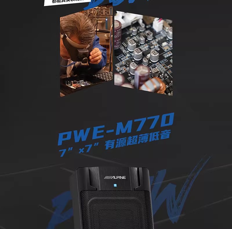 알파인 PWE-M770 카시트 서브 우퍼 7 인치 서브 우퍼 초박형 액티브 건 자동차 오디오 수정스토어 가기