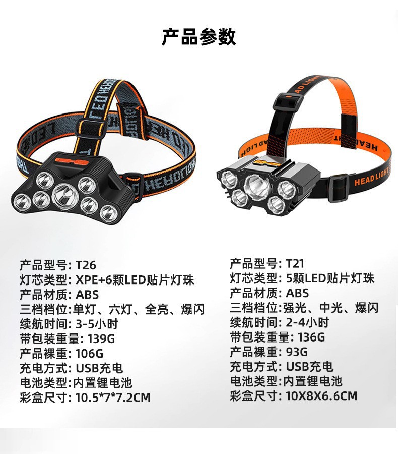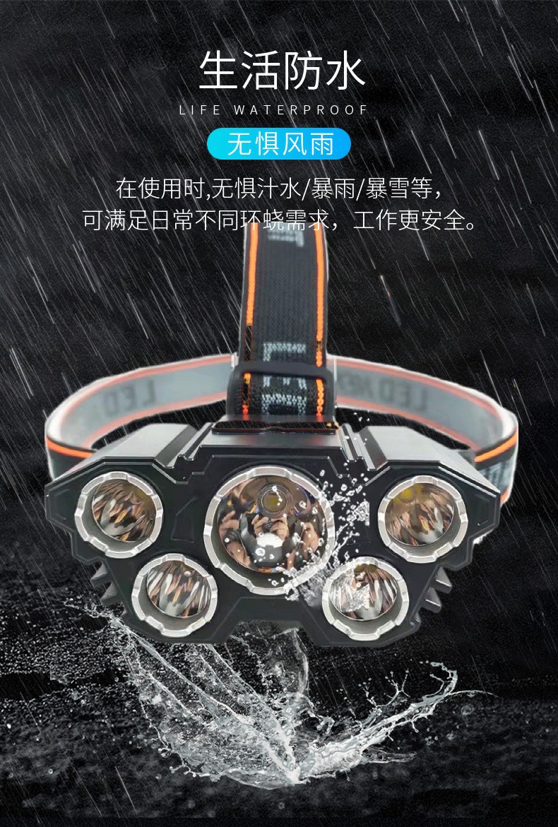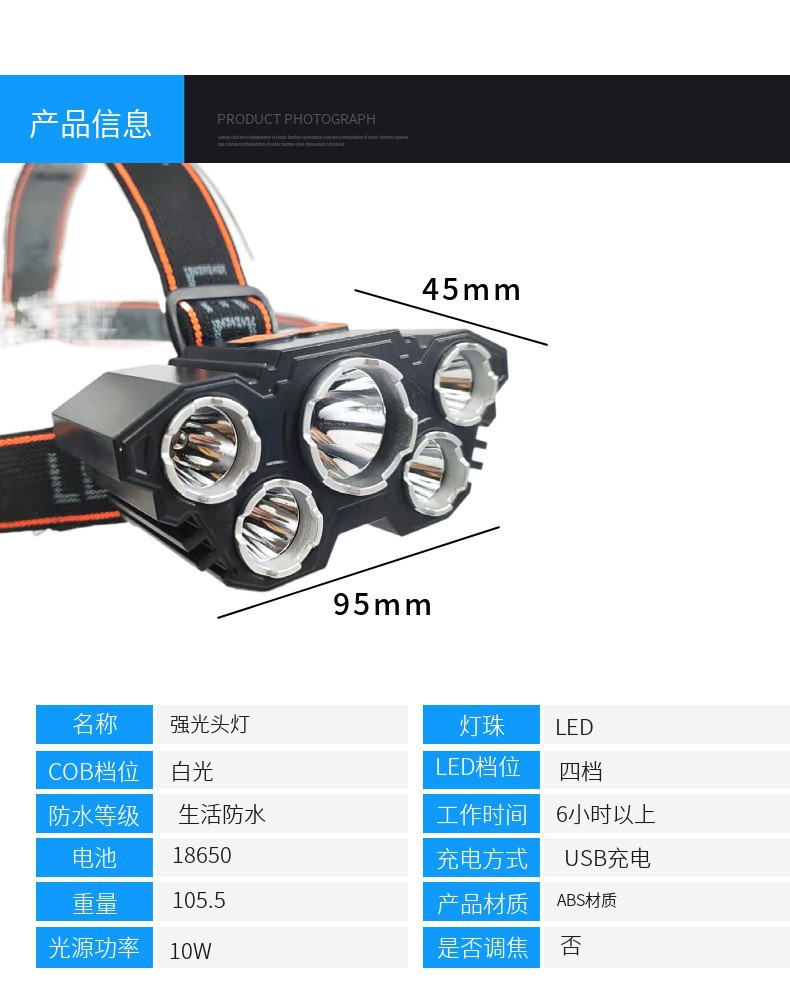 5LED 조명 USB 충전 장거리 투광 조명 야간 낚시 램프 야외 휴대용 휴대용 손전등