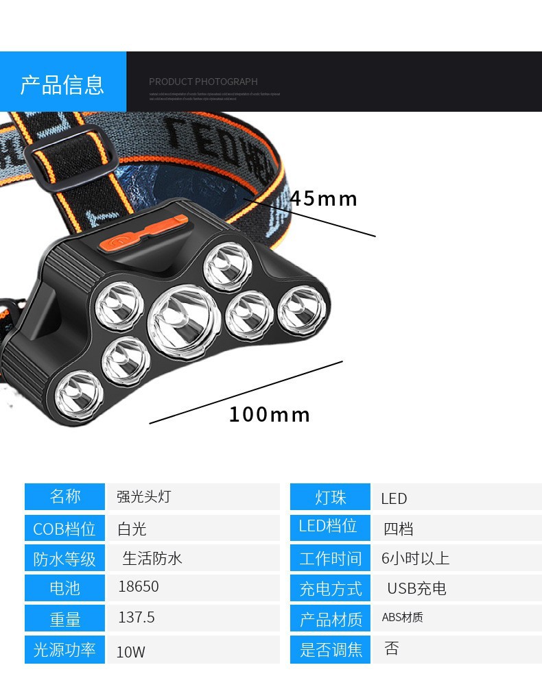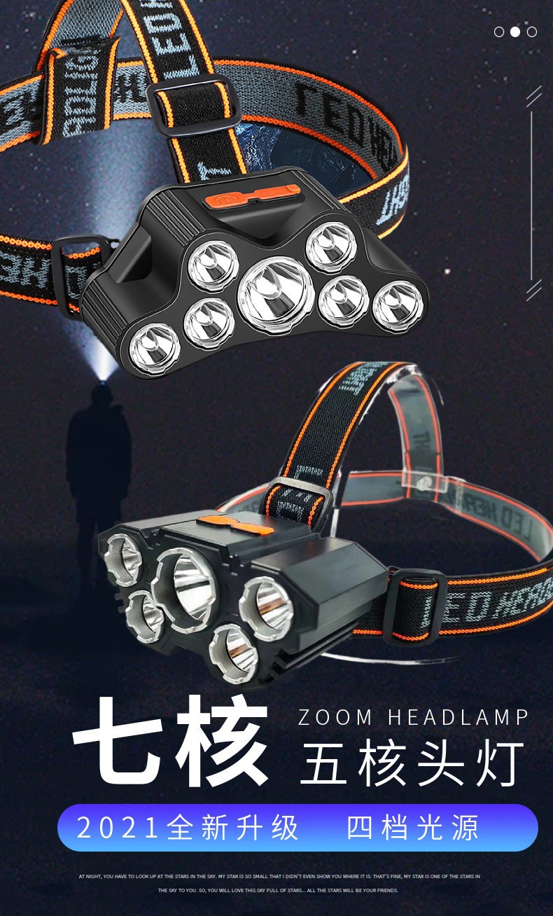 5LED 조명 USB 충전 장거리 투광 조명 야간 낚시 램프 야외 휴대용 휴대용 손전등스토어 가기