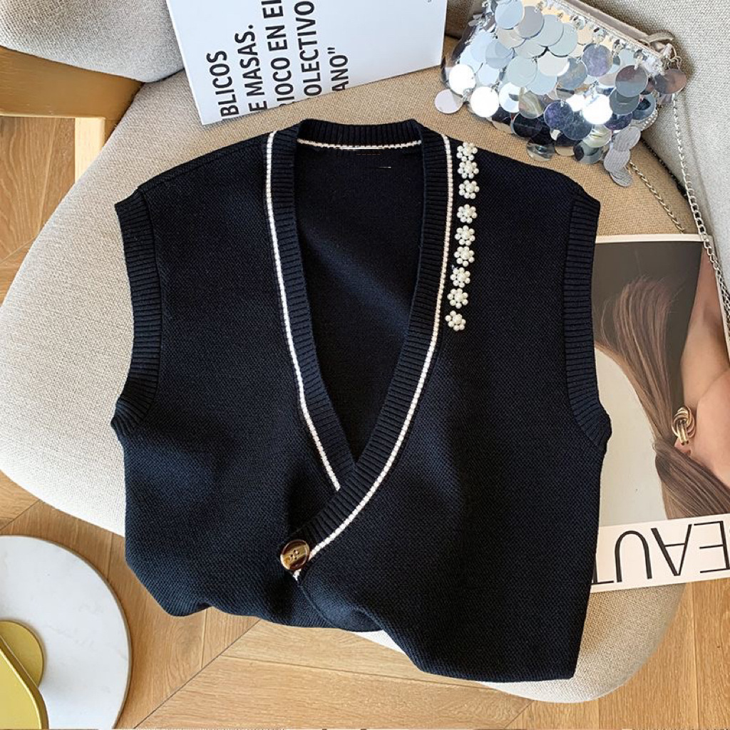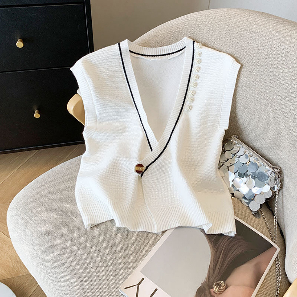 새로운 여름 새로운 스타일 서양식 여성 의류 디자인 센스 V 넥 조끼 틈새 민소매 조끼 T 슬리브 니트웨어 여성스토어 가기