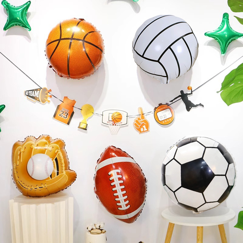 게임 테마 농구 축구 풍선 스포츠 생일 준비 학교 유치원 장식 배구 알루미늄 필름 풍선