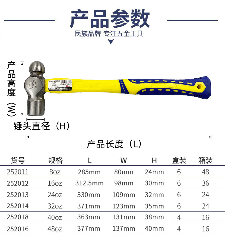 • 252016 만리장성 섬유 손잡이 볼 헤드 해머 2P48oz(4/16)