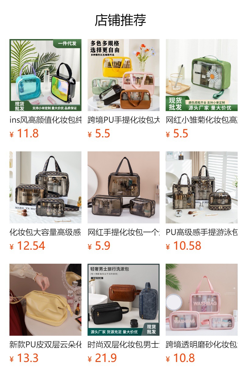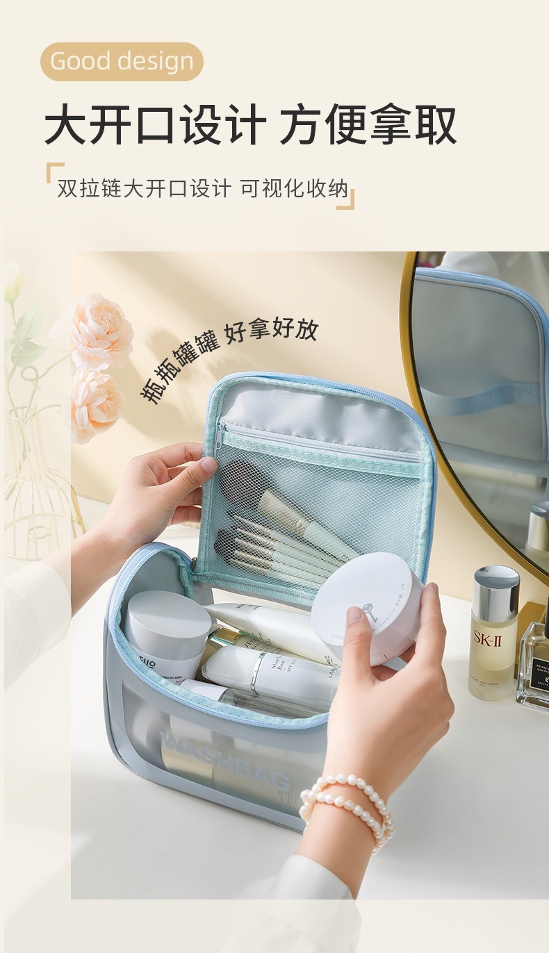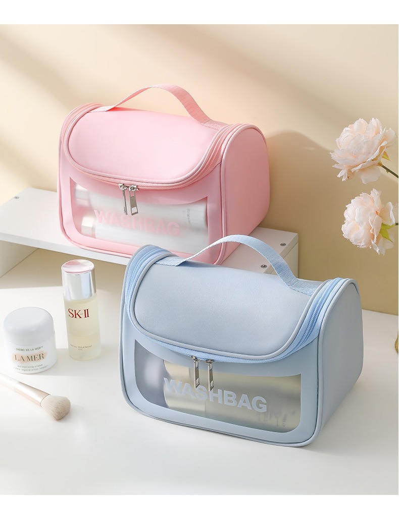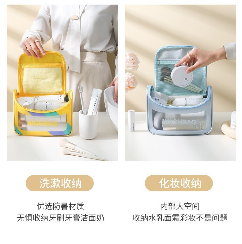 높은 색상 가치 PVC 투명 화장품 가방 여행 휴대용 방수 세척 가방 대용량 스킨 케어 제품 저장 가방 도매스토어 가기