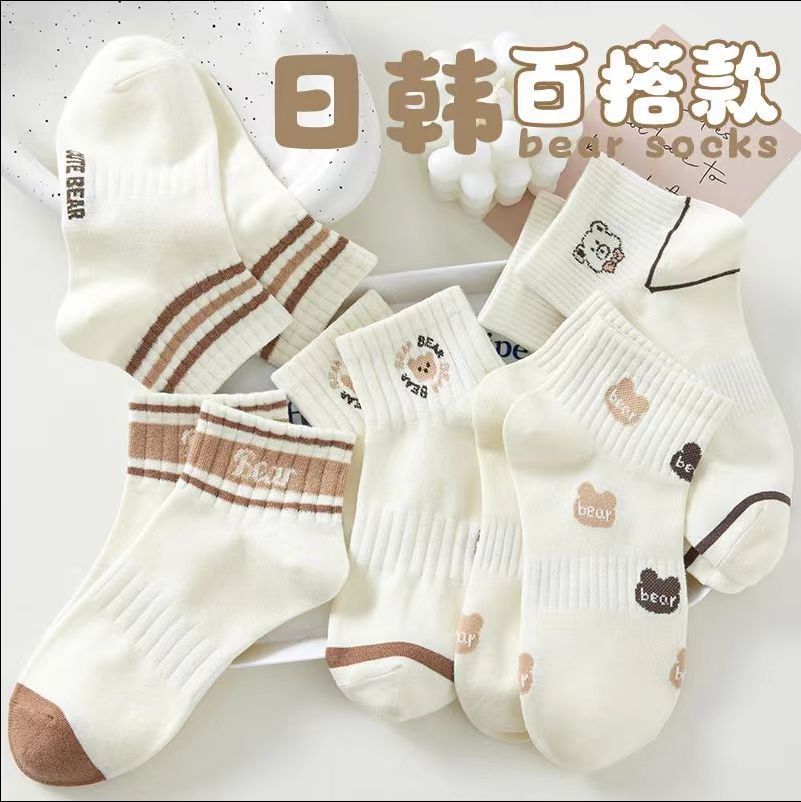 • 여성 양말 "QppLe 체크 무늬 곰]